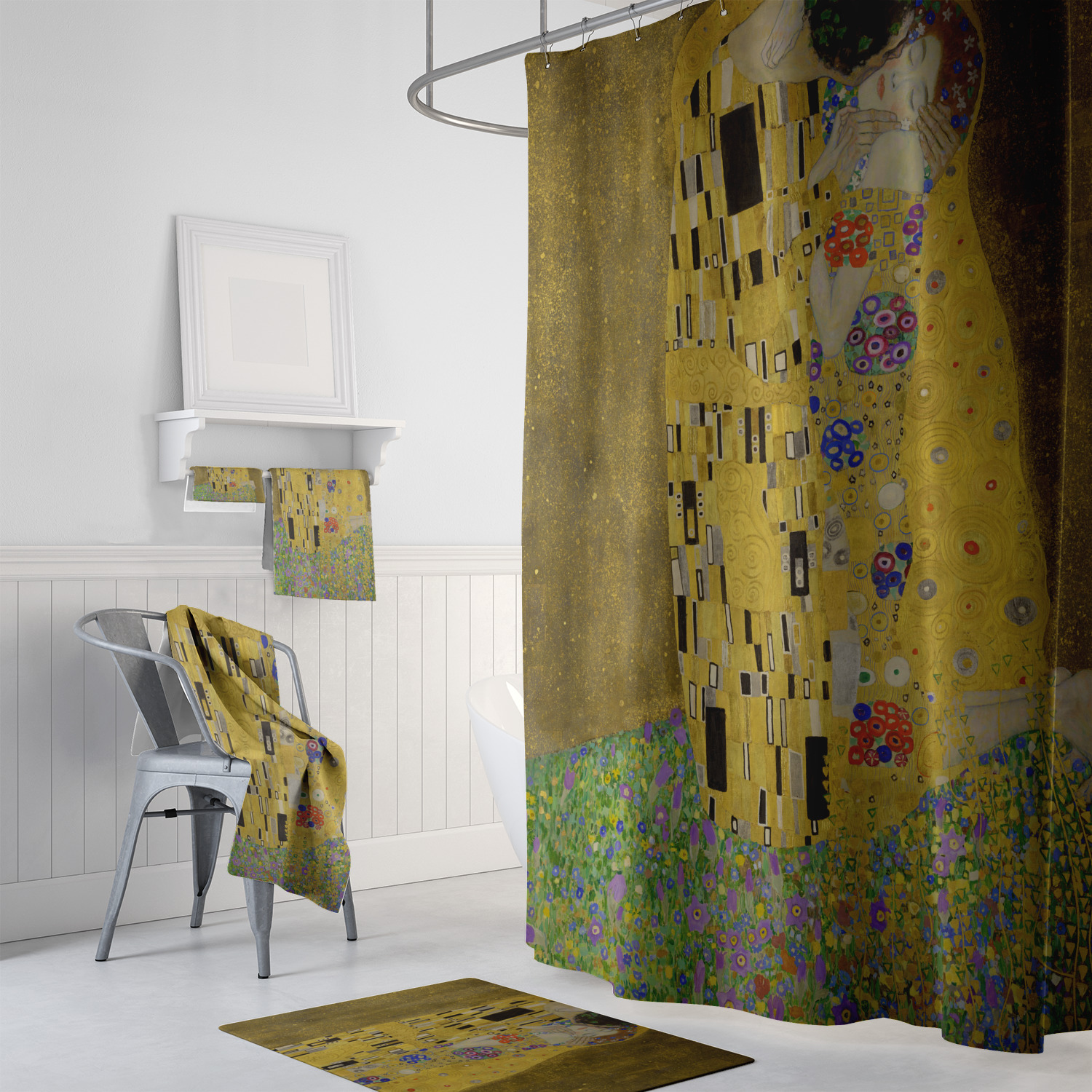 Now you can enjoy this beautiful art on a daily basis. Well not all of it! To put The Kiss (a square) on products, we use as much of the painting as we can on each product. So for a square product like the shower curtain - we use the entire square; however, for other products such as the wristlet (a wide 4x1 rectangle) - you get a small slice of the painting and we use the focal point - which in this case is The Kiss!