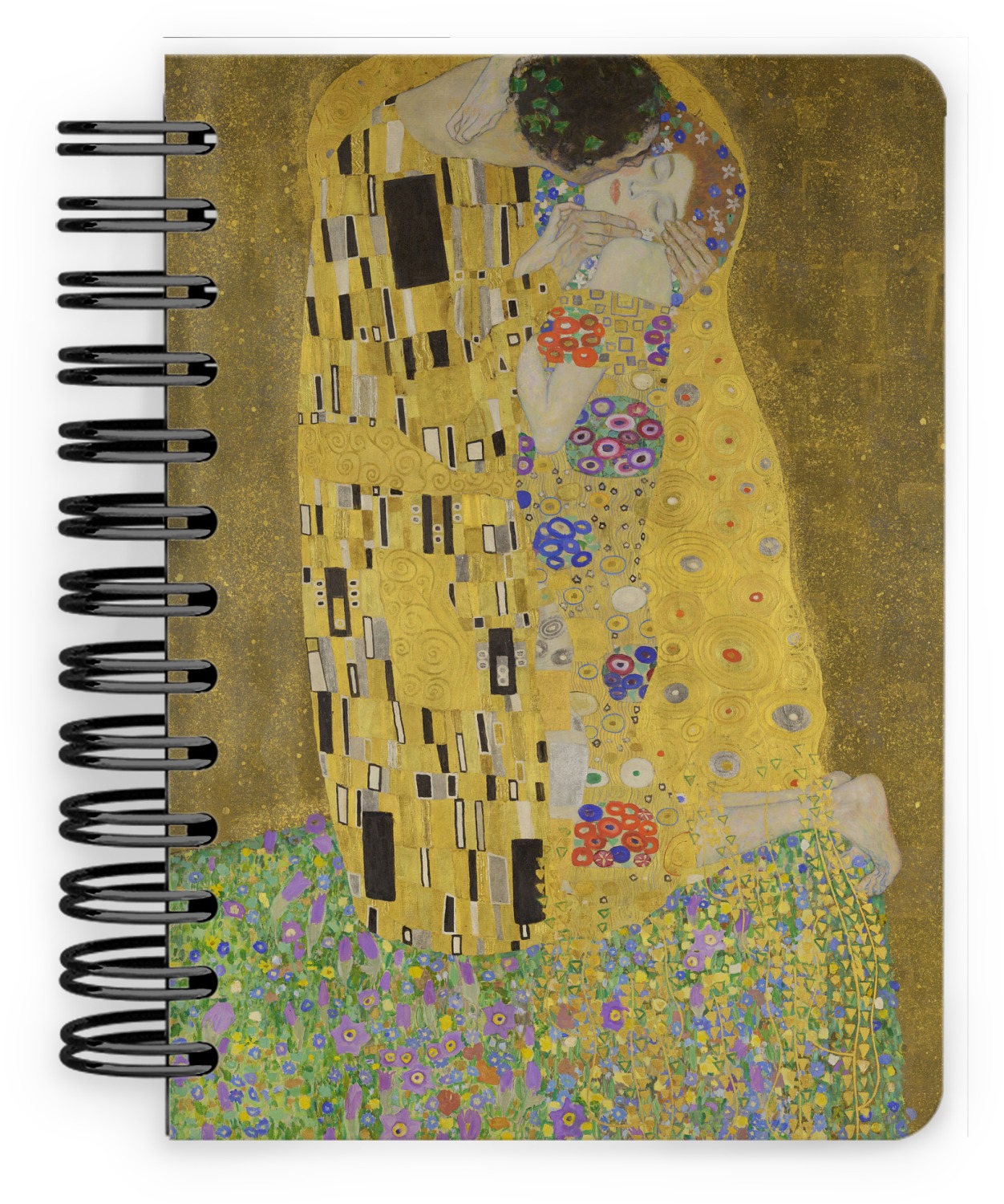 The Kiss (Lovers) was painted by the Austrian Symbolist painter Gustav Klimt between 1907 and 1908, the high-point of his "Golden Period", when he painted a number of works in a similar gilded style. A perfect square, the canvas depicts a couple embracing, their bodies entwined in elaborate robes decorated in a style influenced by both linear constructs of the contemporary Art Nouveau style and the organic forms of the earlier Arts and Crafts movement. The work is composed of oil paint with applied layers of gold leaf, an aspect that gives it its strikingly modern, yet evocative appearance. It is a symbol of Viennese Art Nouveau and is considered Klimt's most popular work.(source: Wikipedia)
