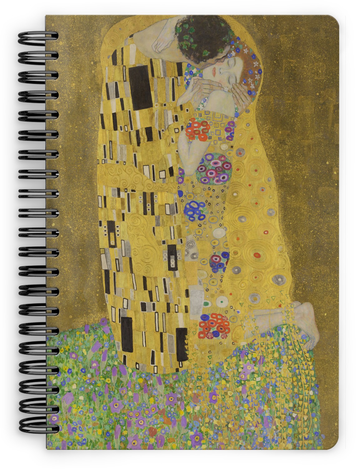 The Kiss (Lovers) was painted by the Austrian Symbolist painter Gustav Klimt between 1907 and 1908, the high-point of his "Golden Period", when he painted a number of works in a similar gilded style. A perfect square, the canvas depicts a couple embracing, their bodies entwined in elaborate robes decorated in a style influenced by both linear constructs of the contemporary Art Nouveau style and the organic forms of the earlier Arts and Crafts movement. The work is composed of oil paint with applied layers of gold leaf, an aspect that gives it its strikingly modern, yet evocative appearance. It is a symbol of Viennese Art Nouveau and is considered Klimt's most popular work.(source: Wikipedia)
