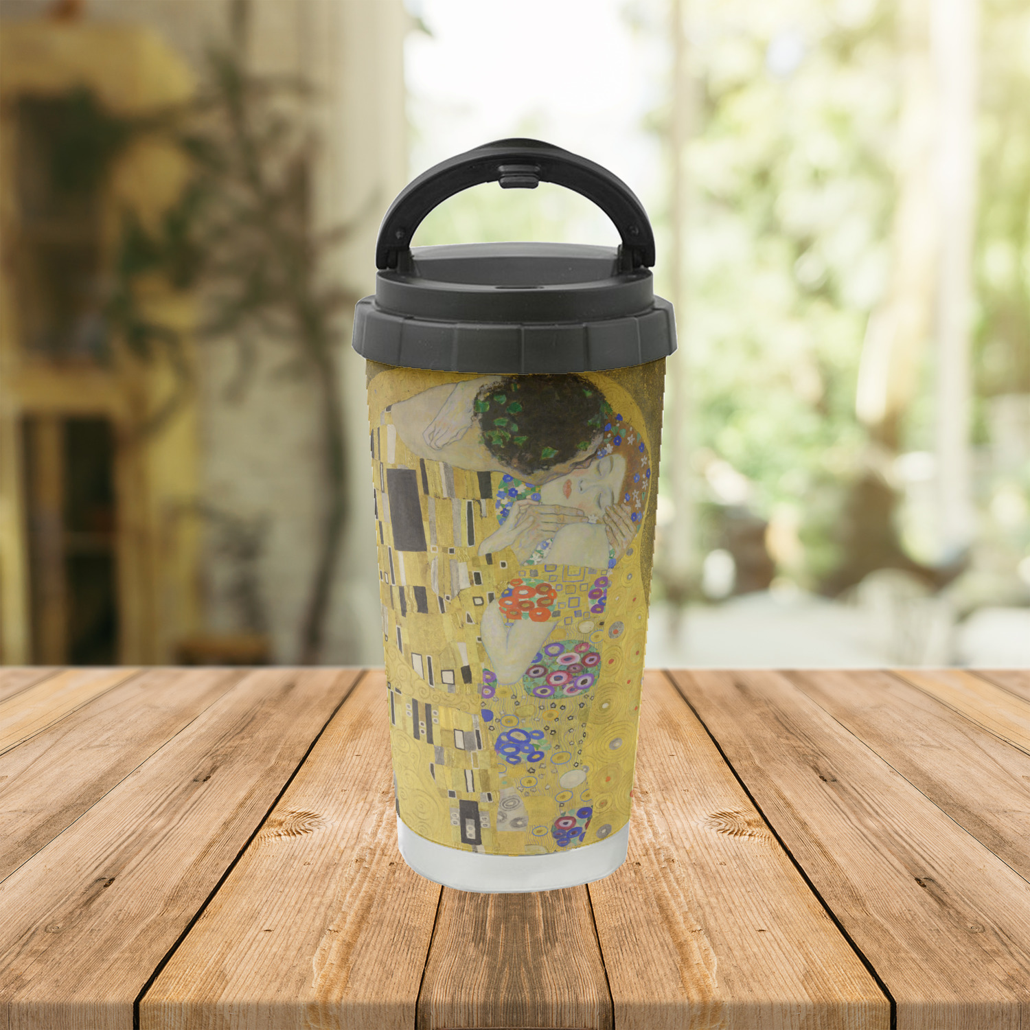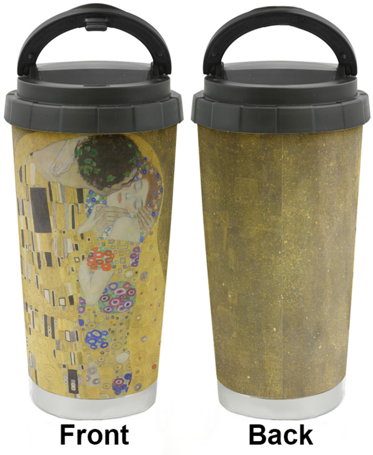 The Kiss (Lovers) was painted by the Austrian Symbolist painter Gustav Klimt between 1907 and 1908, the high-point of his "Golden Period", when he painted a number of works in a similar gilded style. A perfect square, the canvas depicts a couple embracing, their bodies entwined in elaborate robes decorated in a style influenced by both linear constructs of the contemporary Art Nouveau style and the organic forms of the earlier Arts and Crafts movement. The work is composed of oil paint with applied layers of gold leaf, an aspect that gives it its strikingly modern, yet evocative appearance. It is a symbol of Viennese Art Nouveau and is considered Klimt's most popular work.(source: Wikipedia)