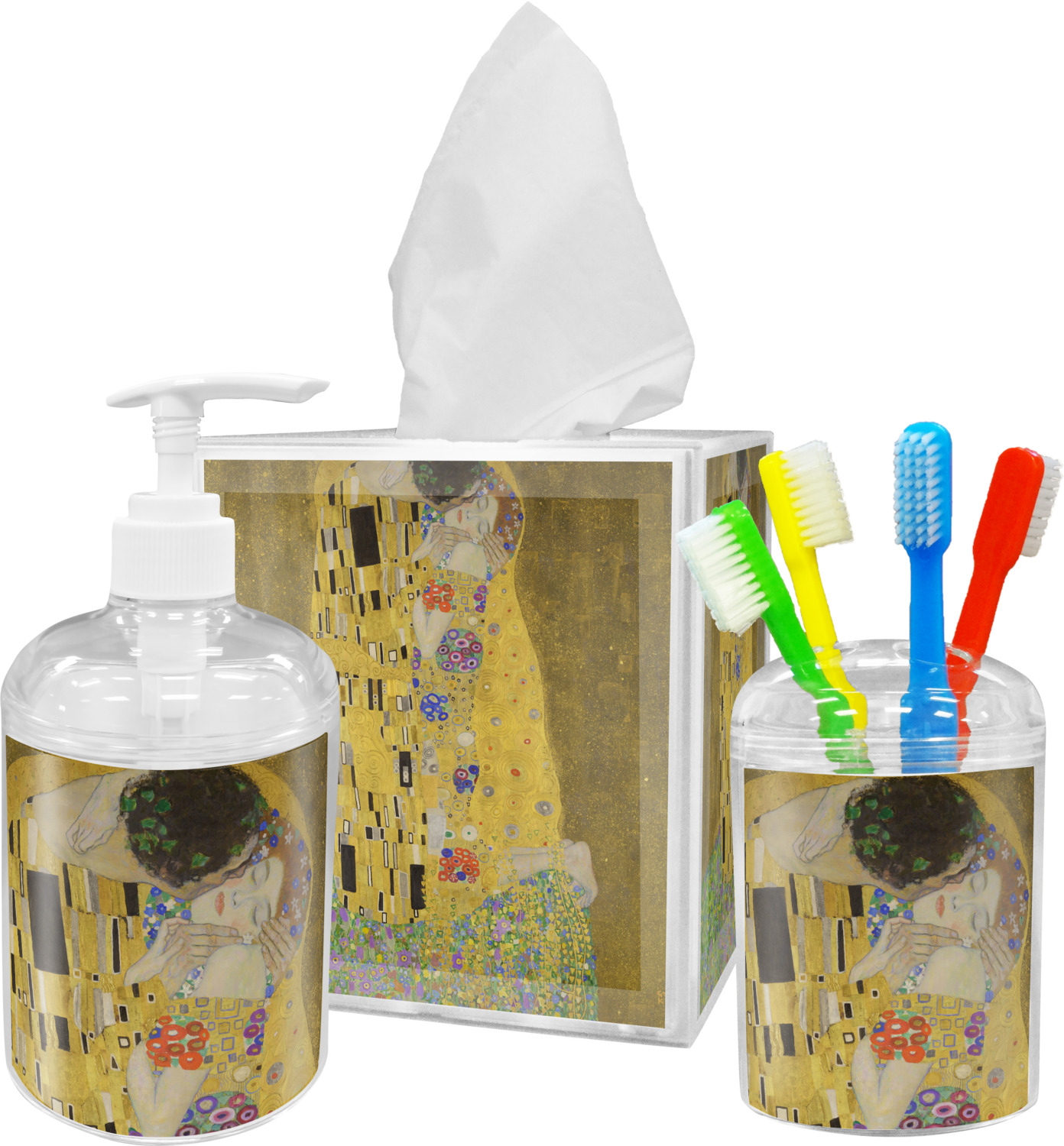 Now you can enjoy this beautiful art on a daily basis. Well not all of it! To put The Kiss (a square) on products, we use as much of the painting as we can on each product. So for a square product like the shower curtain - we use the entire square; however, for other products such as the wristlet (a wide 4x1 rectangle) - you get a small slice of the painting and we use the focal point - which in this case is The Kiss!