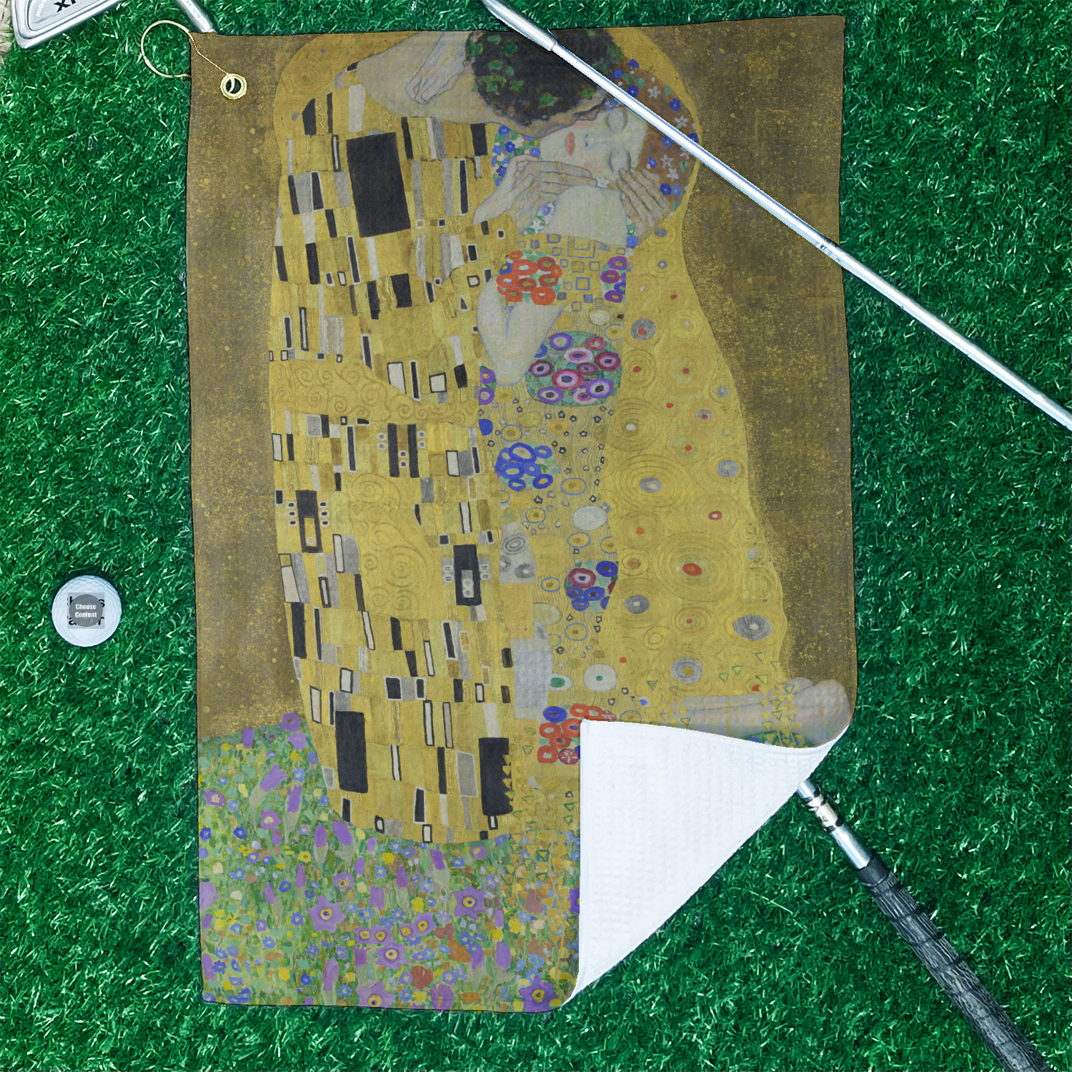 Now you can enjoy this beautiful art on a daily basis. Well not all of it! To put The Kiss (a square) on products, we use as much of the painting as we can on each product. So for a square product like the shower curtain - we use the entire square; however, for other products such as the wristlet (a wide 4x1 rectangle) - you get a small slice of the painting and we use the focal point - which in this case is The Kiss!