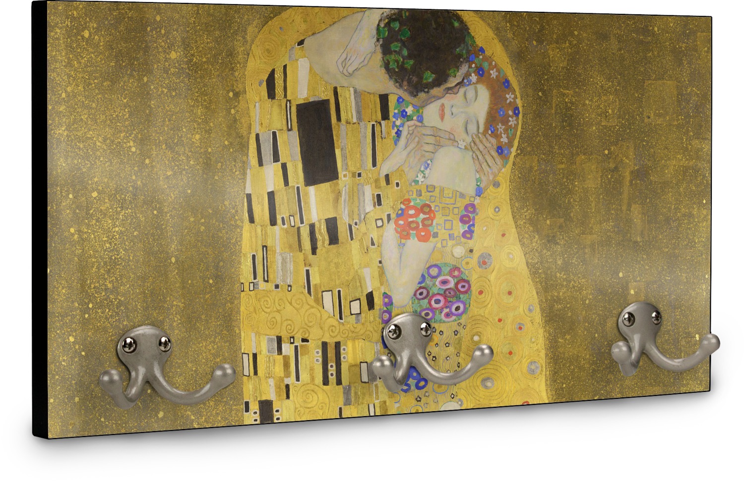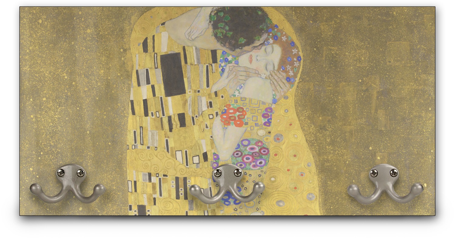 Now you can enjoy this beautiful art on a daily basis. Well not all of it! To put The Kiss (a square) on products, we use as much of the painting as we can on each product. So for a square product like the shower curtain - we use the entire square; however, for other products such as the wristlet (a wide 4x1 rectangle) - you get a small slice of the painting and we use the focal point - which in this case is The Kiss!