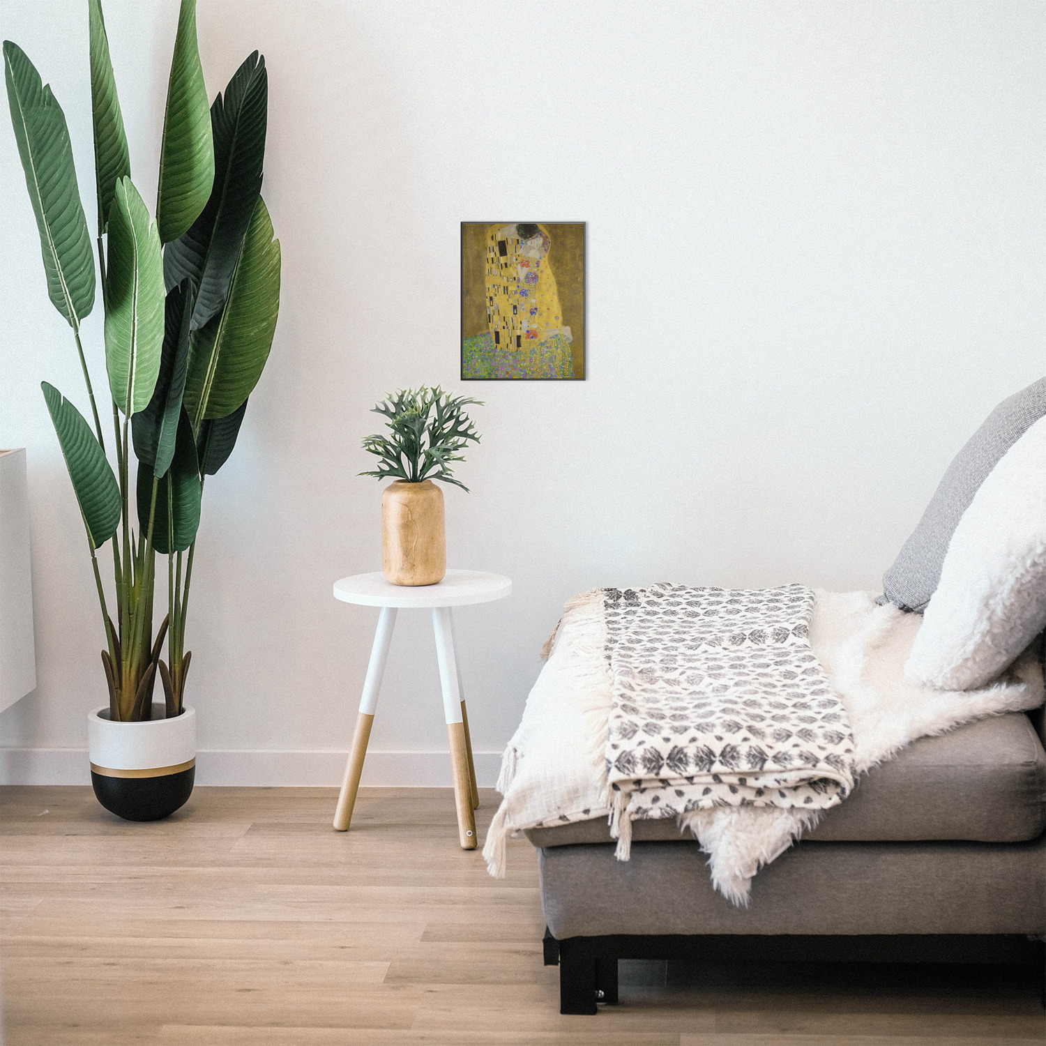 Now you can enjoy this beautiful art on a daily basis. Well not all of it! To put The Kiss (a square) on products, we use as much of the painting as we can on each product. So for a square product like the shower curtain - we use the entire square; however, for other products such as the wristlet (a wide 4x1 rectangle) - you get a small slice of the painting and we use the focal point - which in this case is The Kiss!
