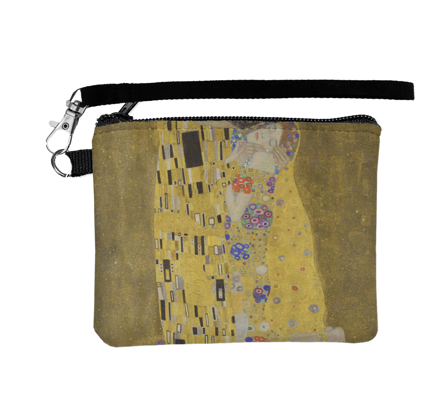 Now you can enjoy this beautiful art on a daily basis. Well not all of it! To put The Kiss (a square) on products, we use as much of the painting as we can on each product. So for a square product like the shower curtain - we use the entire square; however, for other products such as the wristlet (a wide 4x1 rectangle) - you get a small slice of the painting and we use the focal point - which in this case is The Kiss!