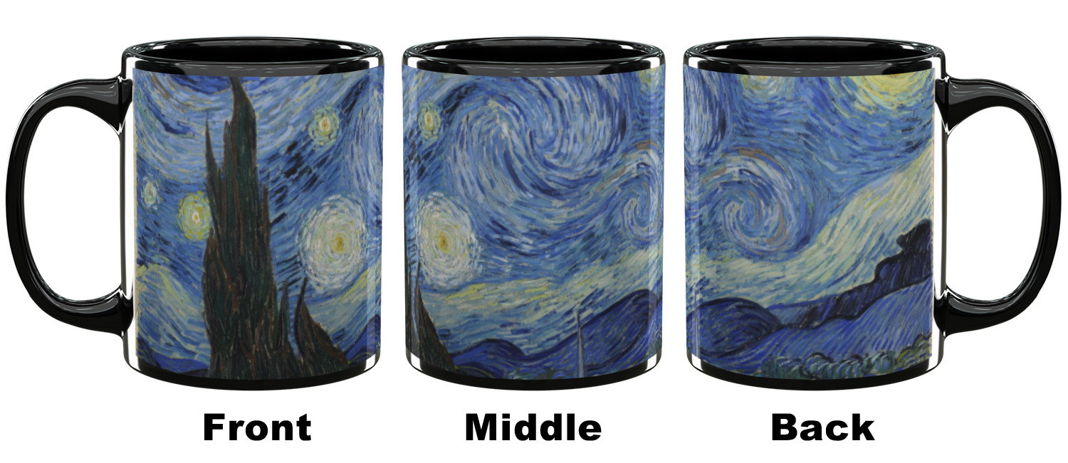 Our ceramic mugs have your design or photo printed along the surface with a gloss finish. The ceramic material of our mugs is dishwasher and microwave safe so you can reheat your tea or coffee if needed! We offer two different base colors with multiple mug sizes. The white ceramic mugs come in three size options - 11 oz., 15 oz., and 20 oz. Our black ceramic mugs are sold in either 11 oz. or 15 oz. sizes.