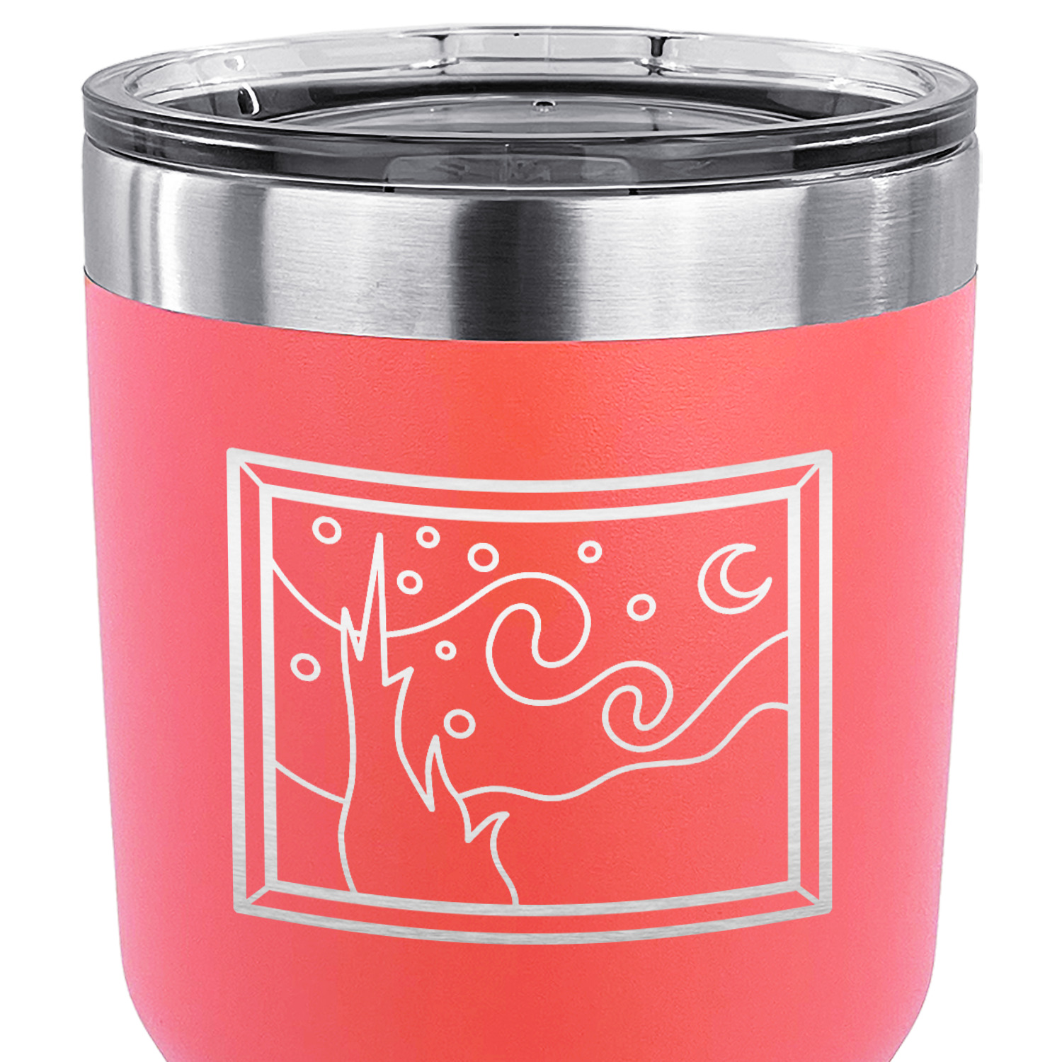 With the 5 colors - Black, Navy, Red, Pink and Coral, you are sure to find a cup to fit your personality. You can chose to engrave on the front or the front and back of the cup. Use our design studio to design your own cup and we laser engrave it for you.