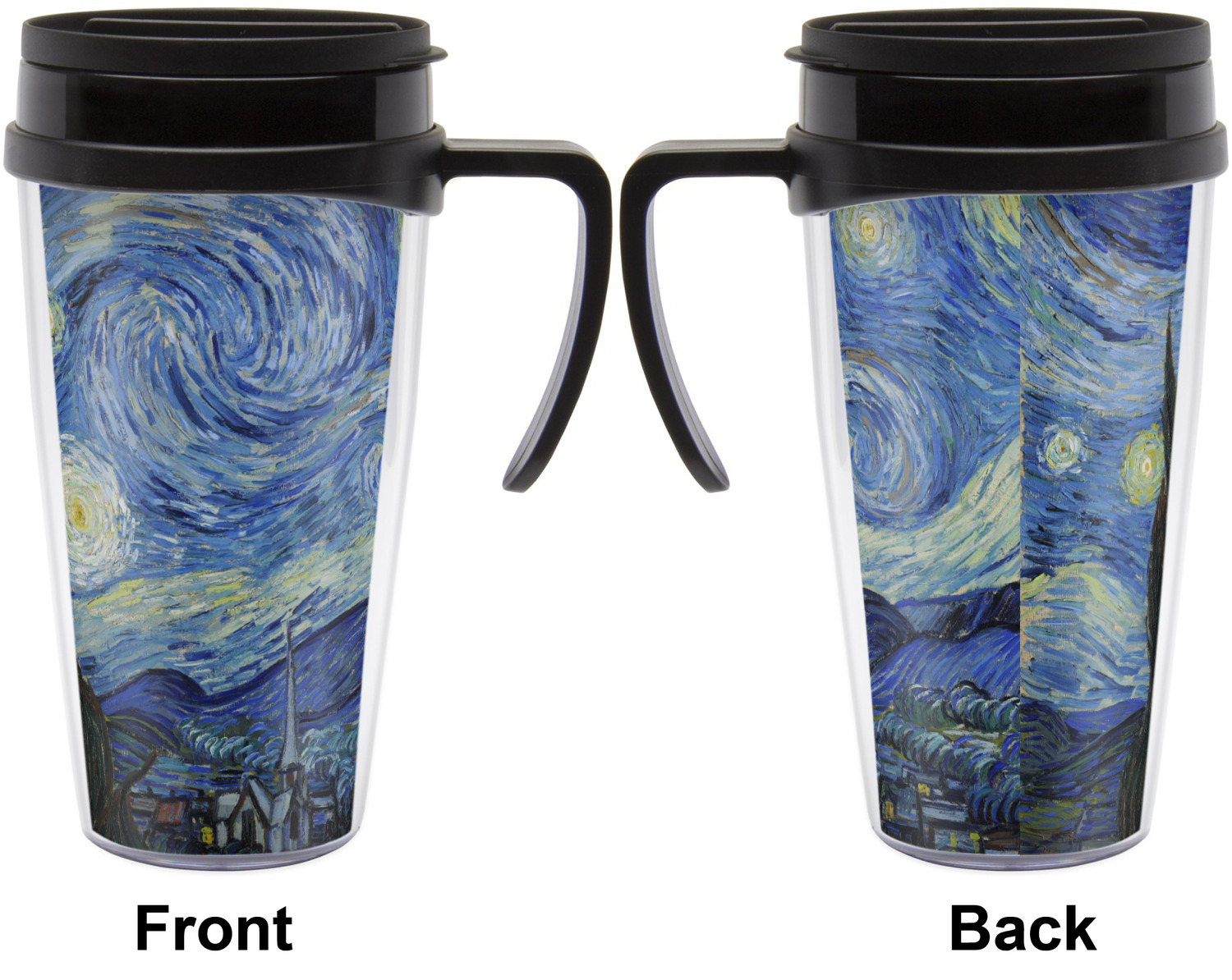 These thermal mugs are free of BPA, and insulated, to keep your drinks hot or cold. The black, snap on lid and the slider for sipping allows you to conveniently sip your drink without constantly worrying about a disastrous spill. We offer this mug with and without a handle, to better suit your needs. Each custom thermal mug holds up to 16 ounces of liquid and displays your customization on all sides on premium gloss media inserts.