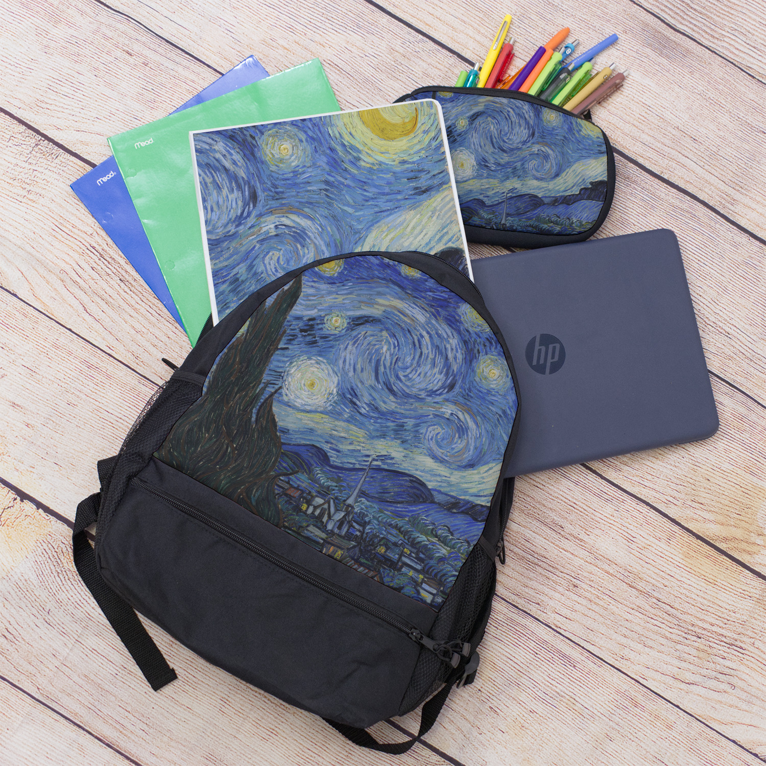 Now you can enjoy Starry Night on a daily basis! Well not all of it! To put this rectangular painting (roughly 4x3) on products, we use as much of the painting as we can on each product. So for a square product like the shower curtain - we use a 3x3 rectangle - which cuts off a little of the sides - but is still very much The Starry Night! For other products such as the wristlet (a wide 4x1 rectangle) - you get a small slice of the painting.