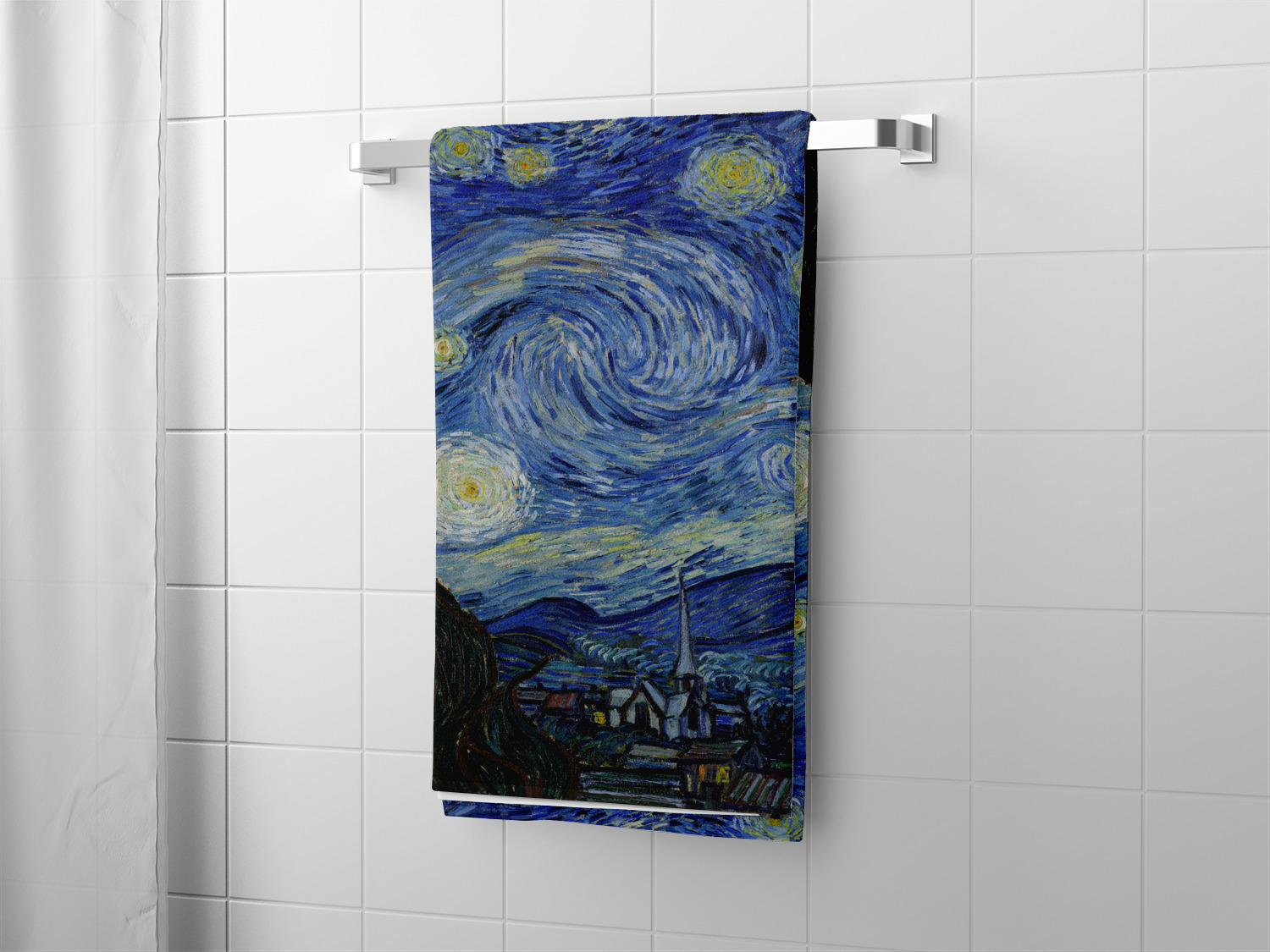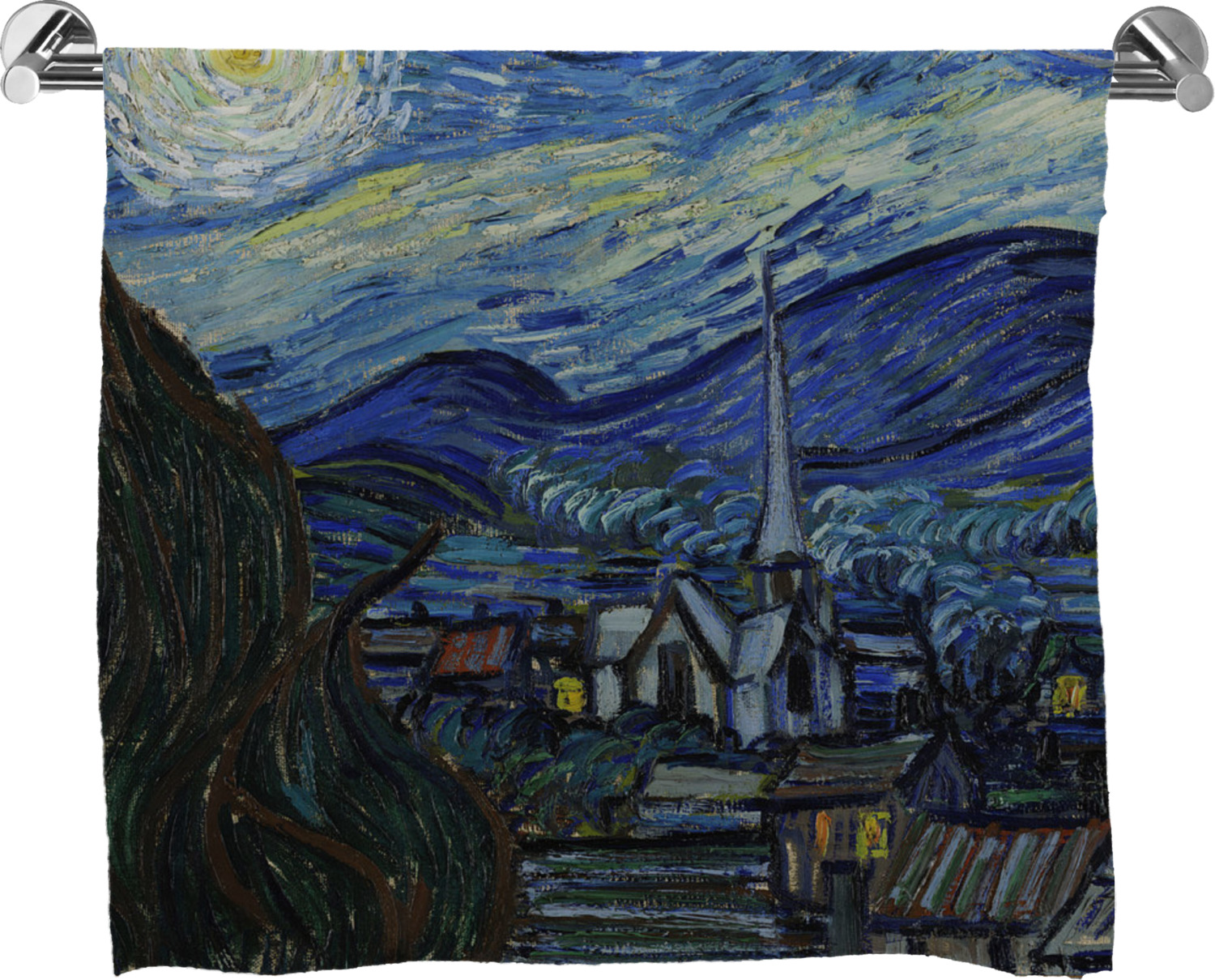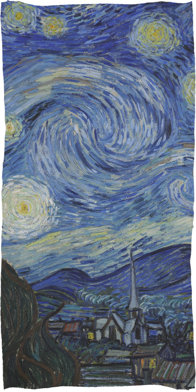Now you can enjoy Starry Night on a daily basis! Well not all of it! To put this rectangular painting (roughly 4x3) on products, we use as much of the painting as we can on each product. So for a square product like the shower curtain - we use a 3x3 rectangle - which cuts off a little of the sides - but is still very much The Starry Night! For other products such as the wristlet (a wide 4x1 rectangle) - you get a small slice of the painting.