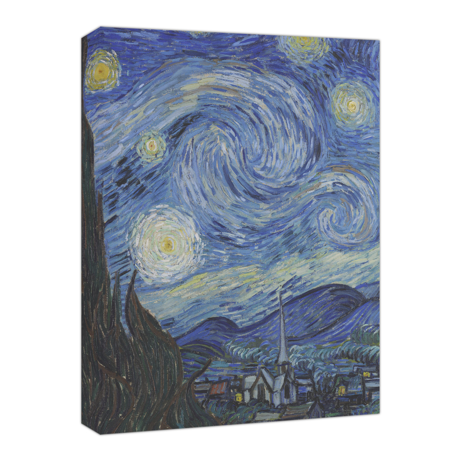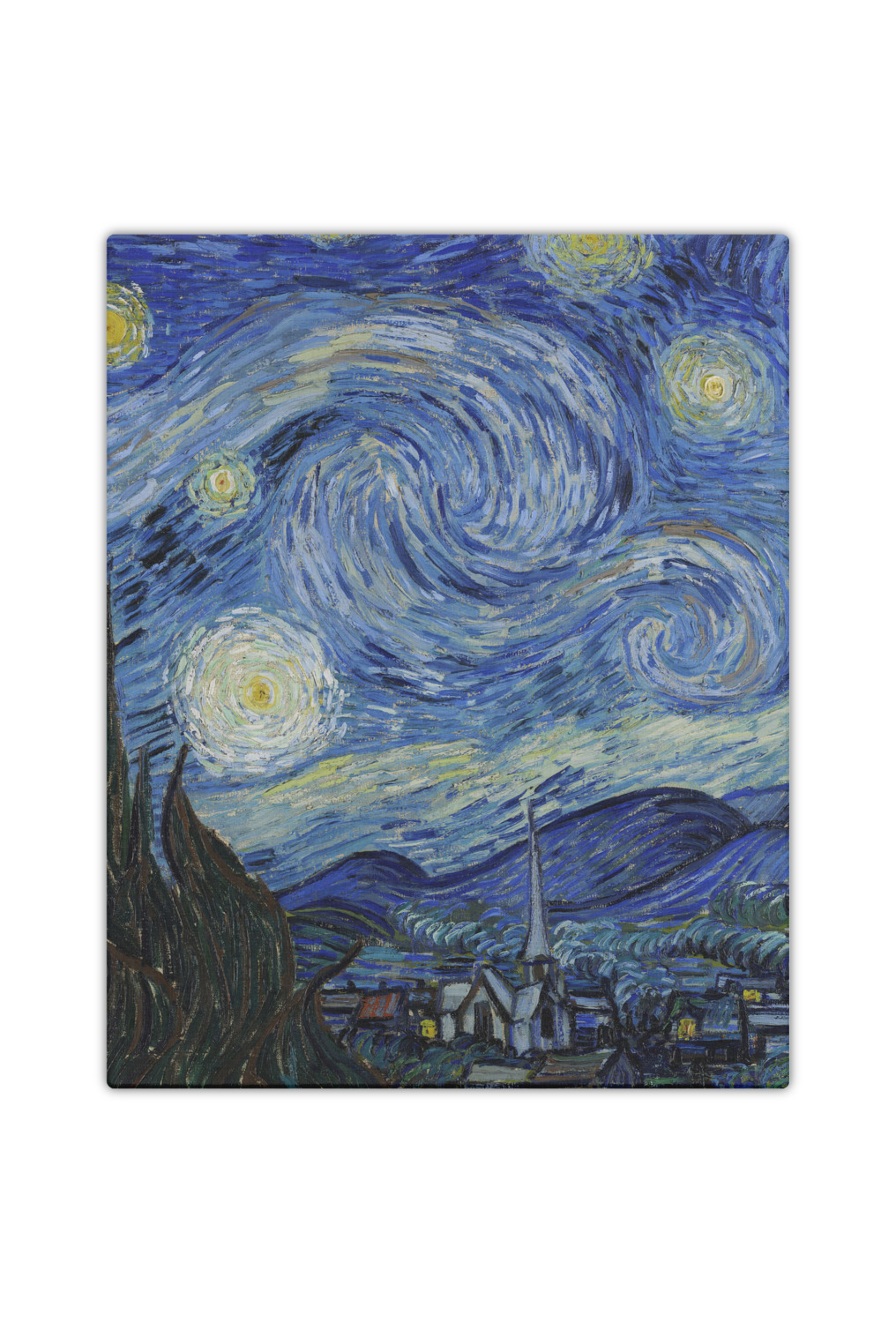 The Starry Night is an oil on canvas by the Dutch post-impressionist painter Vincent van Gogh. Painted in June 1889, it depicts the view from the east-facing window of his asylum room at Saint-Remy-de-Provence, just before sunrise, with the addition of an idealized village. It has been in the permanent collection of the Museum of Modern Art in New York City since 1941, acquired through the Lillie P. Bliss Bequest. It is regarded as among Van Gogh's finest works, and is one of the most recognized paintings in the history of Western culture. (source wikipedia)