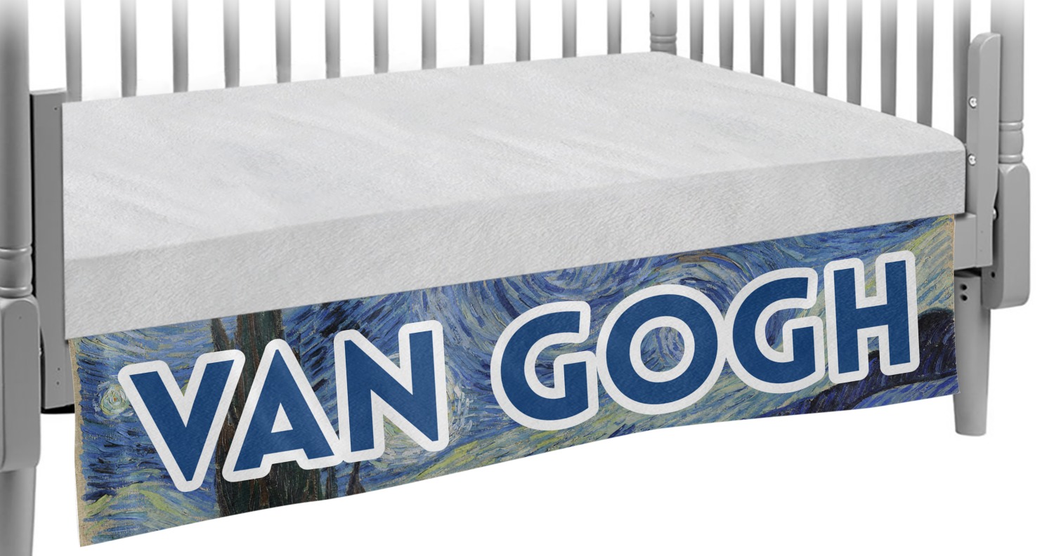 This baby crib skirt is made from two different materials and has split corners for easy placement and removal. The four corners are made from a soft, minky-like material, while the center is made of microfleece. The dual fabric makes this product durable, and still soft-to-the-touch. We provide you with the option of designing each of the four sides to be entirely unique, or to match one another, depending on your creative vision. Your personalization is displayed across the outside of the custom crib skirt, in vibrant colors. When inserted, each side panel drops 15" and is designed to touch the floor at its lowest setting.