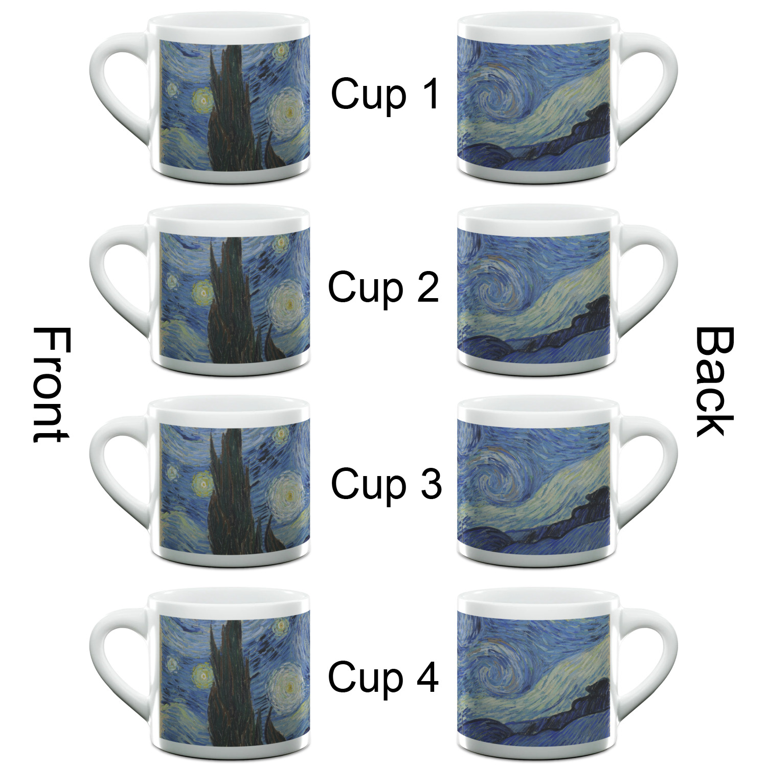 Each of our espresso mugs is a ceramic material sure to keep your drink warm. Personalize one cup for yourself, or order a set of 4! Its the perfect little gift for any coffee lover! We carry two sizes for you to personalize - 3 oz. (approx. 3.25" x 2.325" x 2.625") or 6 oz. (approx. 4" x 2.9" x 2.9"). Our 3 oz. mug is perfect for that single shot espresso while our 6 oz. mug can be your next favorite cappuccino cup holding two shots of espresso!