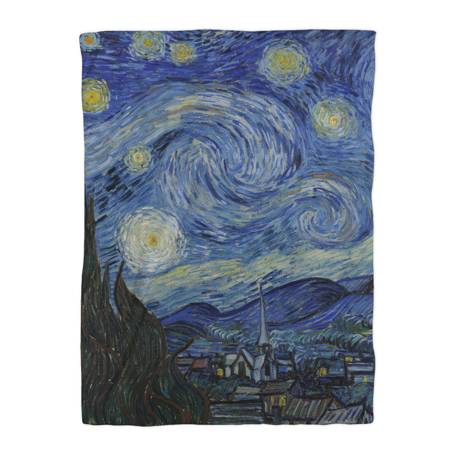 The Starry Night is an oil on canvas by the Dutch post-impressionist painter Vincent van Gogh. Painted in June 1889, it depicts the view from the east-facing window of his asylum room at Saint-Remy-de-Provence, just before sunrise, with the addition of an idealized village. It has been in the permanent collection of the Museum of Modern Art in New York City since 1941, acquired through the Lillie P. Bliss Bequest. It is regarded as among Van Gogh's finest works, and is one of the most recognized paintings in the history of Western culture. (source wikipedia)