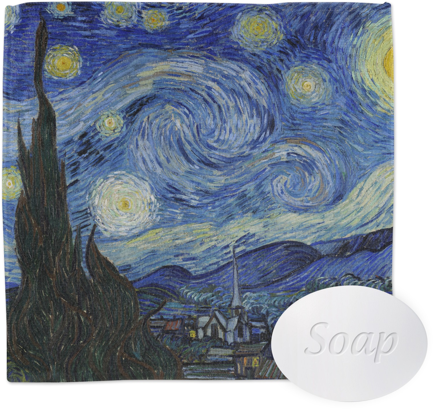 Now you can enjoy Starry Night on a daily basis! Well not all of it! To put this rectangular painting (roughly 4x3) on products, we use as much of the painting as we can on each product. So for a square product like the shower curtain - we use a 3x3 rectangle - which cuts off a little of the sides - but is still very much The Starry Night! For other products such as the wristlet (a wide 4x1 rectangle) - you get a small slice of the painting.