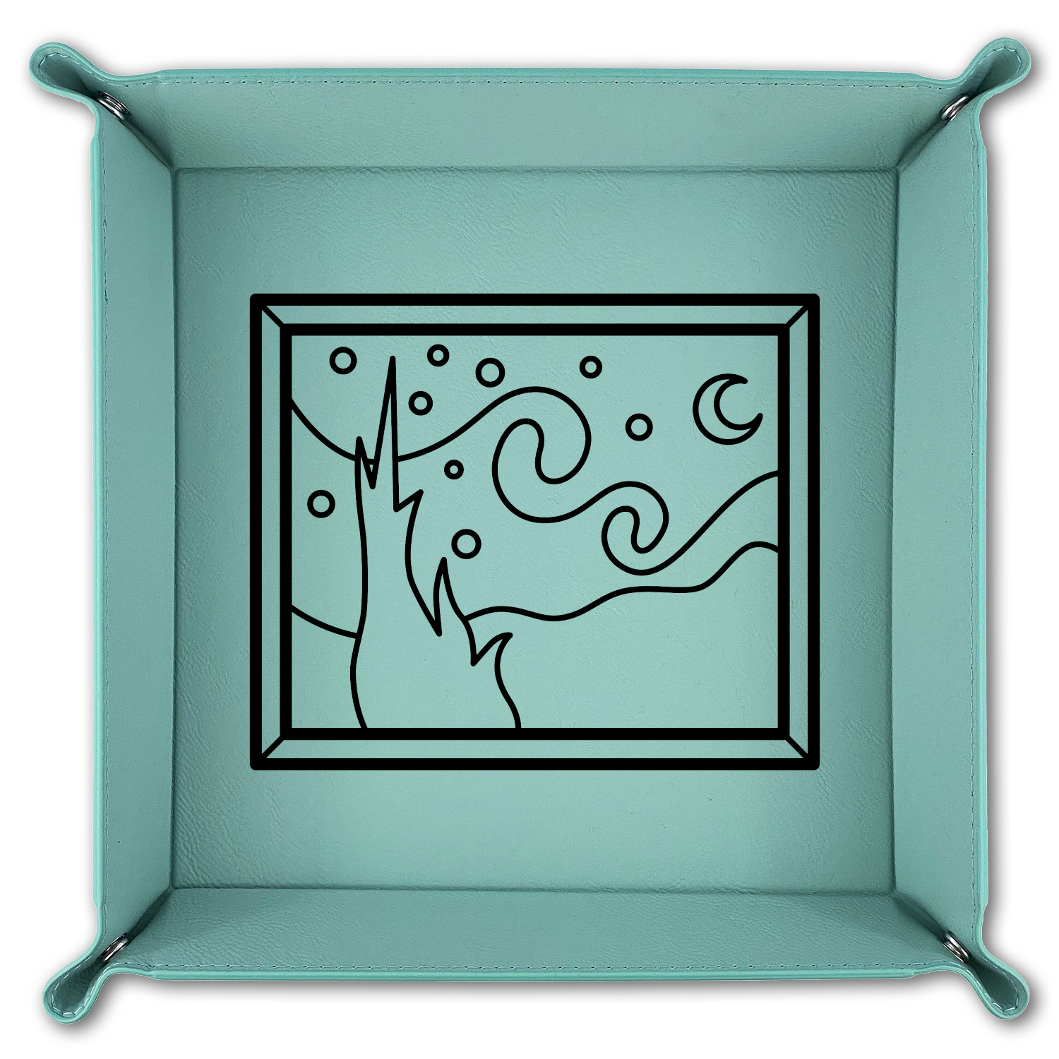 The leatherette wraps the hard board base and sides with flexible hinges to fold the sides up. The corners are secured using silver snaps. The 6in x 6 in tray measures approximately 9.5in x 9.5in when laid flat. The 9in x 9in tray measures approximately 13in x 13in when laid flat.