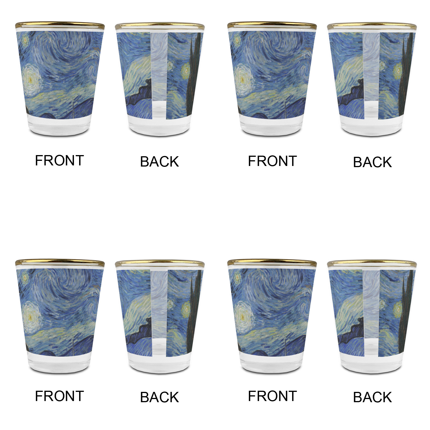 Made with frosted glass, these shot glasses are printed in full color with the design of your choice. They are a standard 1.5oz shot glass and are 2.4" tall. The print is wrapped around the shot glass in a full wrap and boldly displays your customization.