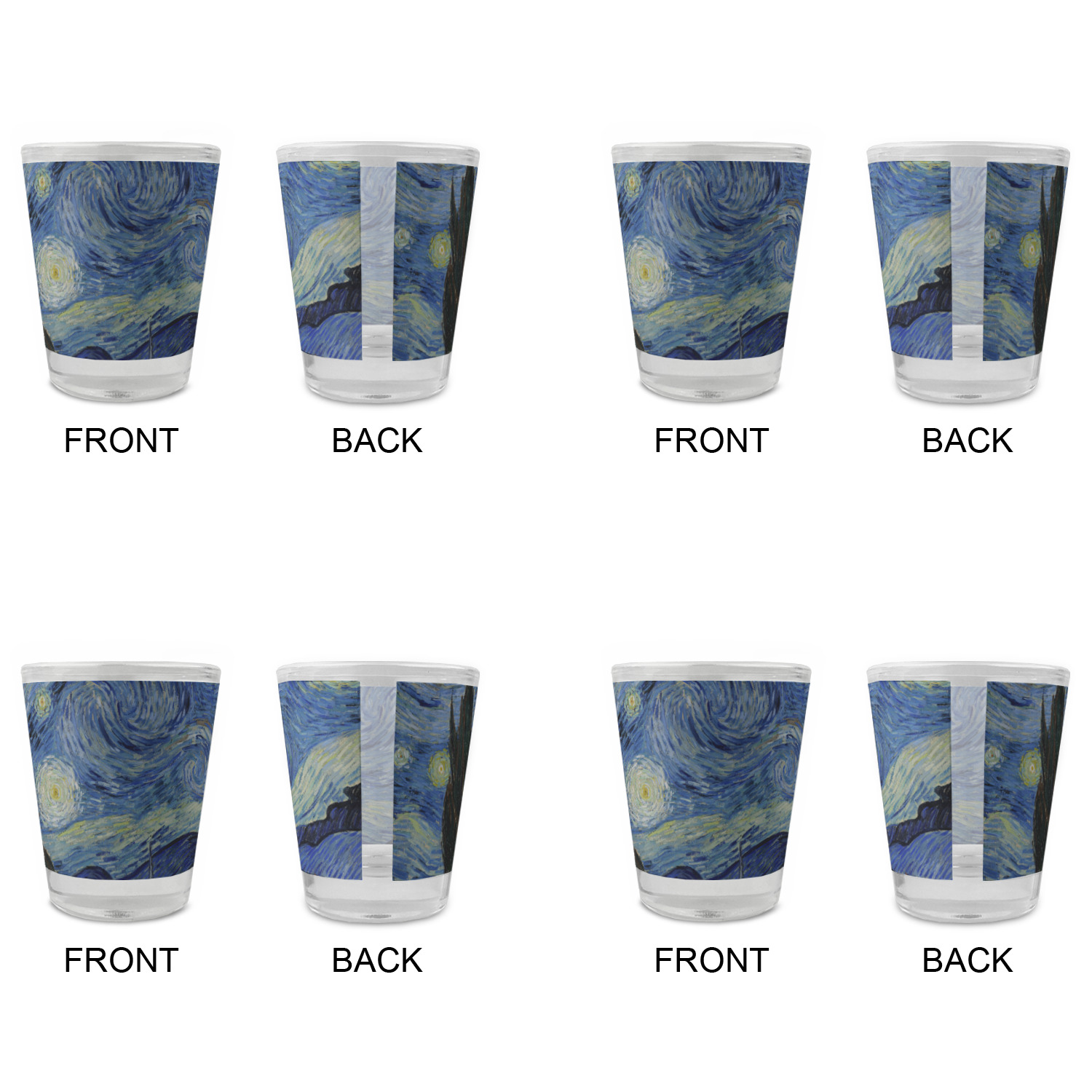 Made with frosted glass, these shot glasses are printed in full color with the design of your choice. They are a standard 1.5oz shot glass and are 2.4" tall. The print is wrapped around the shot glass in a full wrap and boldly displays your customization.