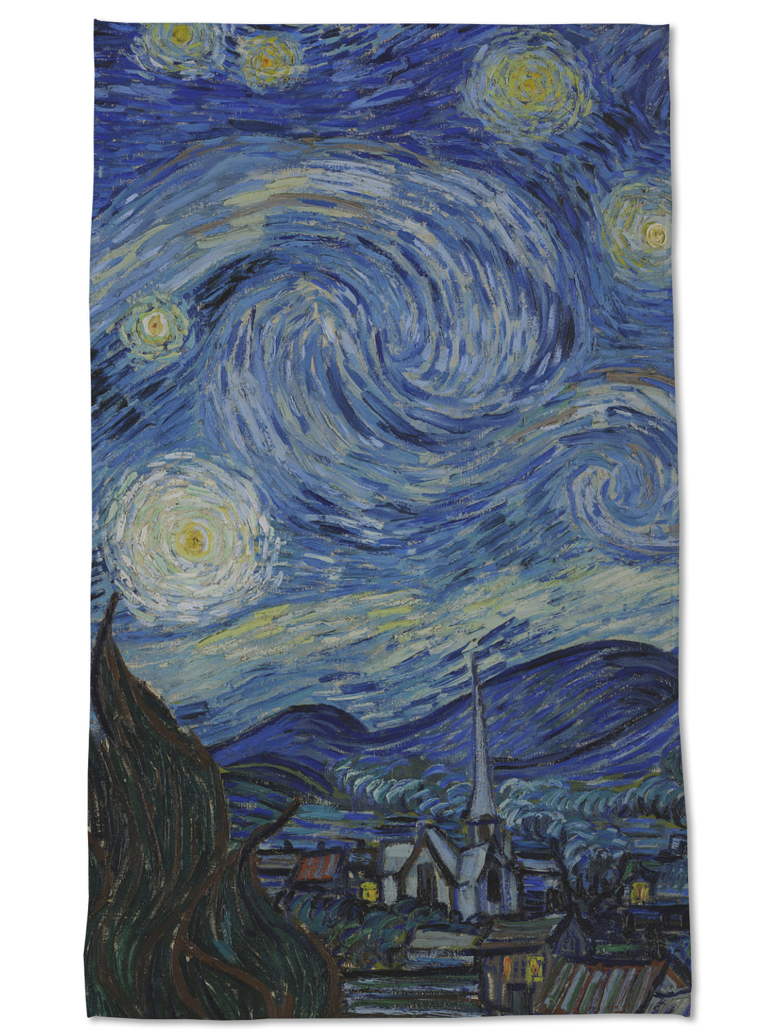 Now you can enjoy Starry Night on a daily basis! Well not all of it! To put this rectangular painting (roughly 4x3) on products, we use as much of the painting as we can on each product. So for a square product like the shower curtain - we use a 3x3 rectangle - which cuts off a little of the sides - but is still very much The Starry Night! For other products such as the wristlet (a wide 4x1 rectangle) - you get a small slice of the painting.