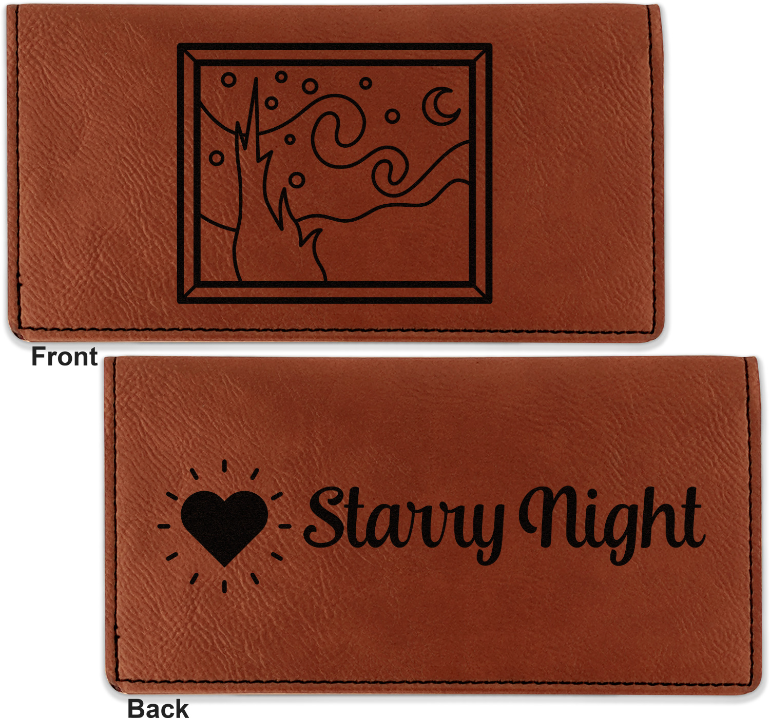 Go into our design center to start personalizing. Your checkbook cover will be laser engraved, making the graphic or text a black color. Choose a fun saying, monogram, or font to go on your checkbook cover. You have the opportunity to do it double or single sided.