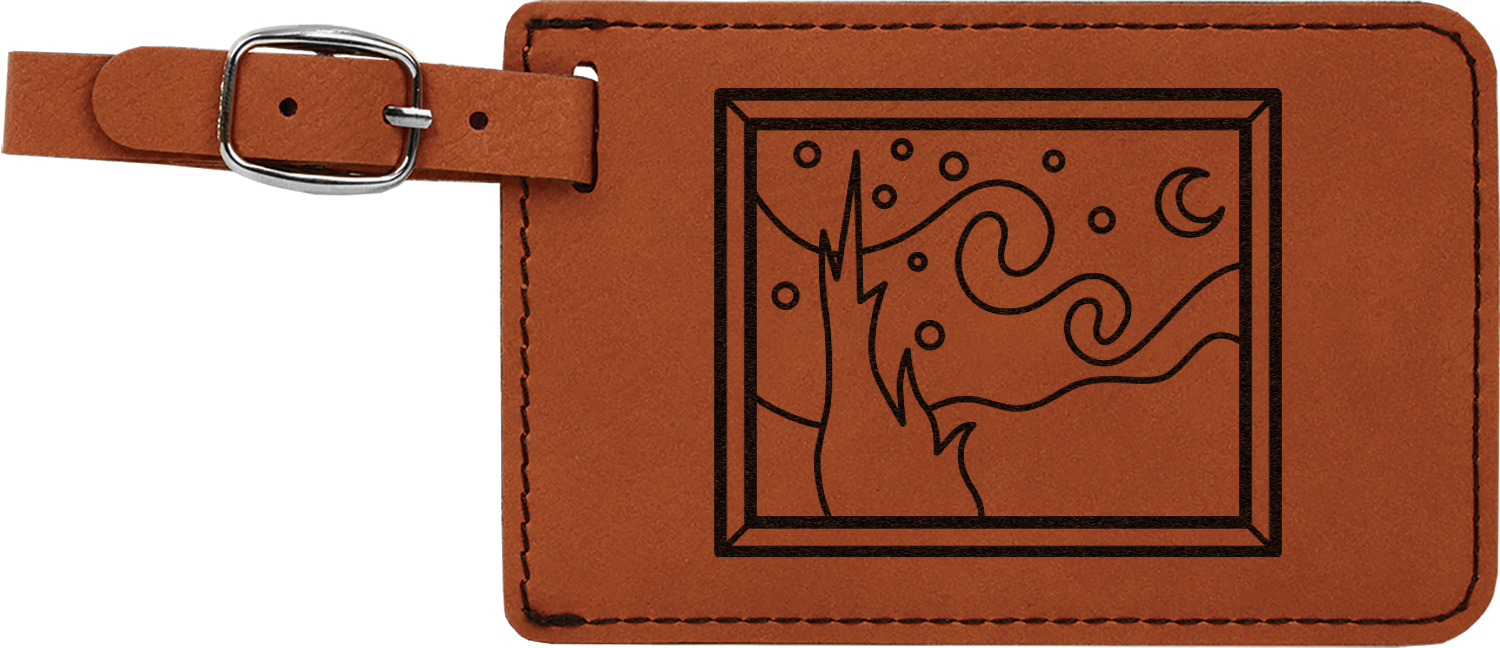 This luggage tag will surely be able to get you started in having all the right tools for traveling. It is made of a beautiful leatherette material that is a nice shade of cognac brown. The front of the tag is where your design goes. The sturdy black stitching gives your design an extra pop and gives the tag extra durability. The back of the tag has a clear vinyl window where you can slip in your address card. The tag comes with a great little buckle strap that you can easily use to clip to your suitcase. The tag itself measures at approximately 5.5"W x 4.25"H.