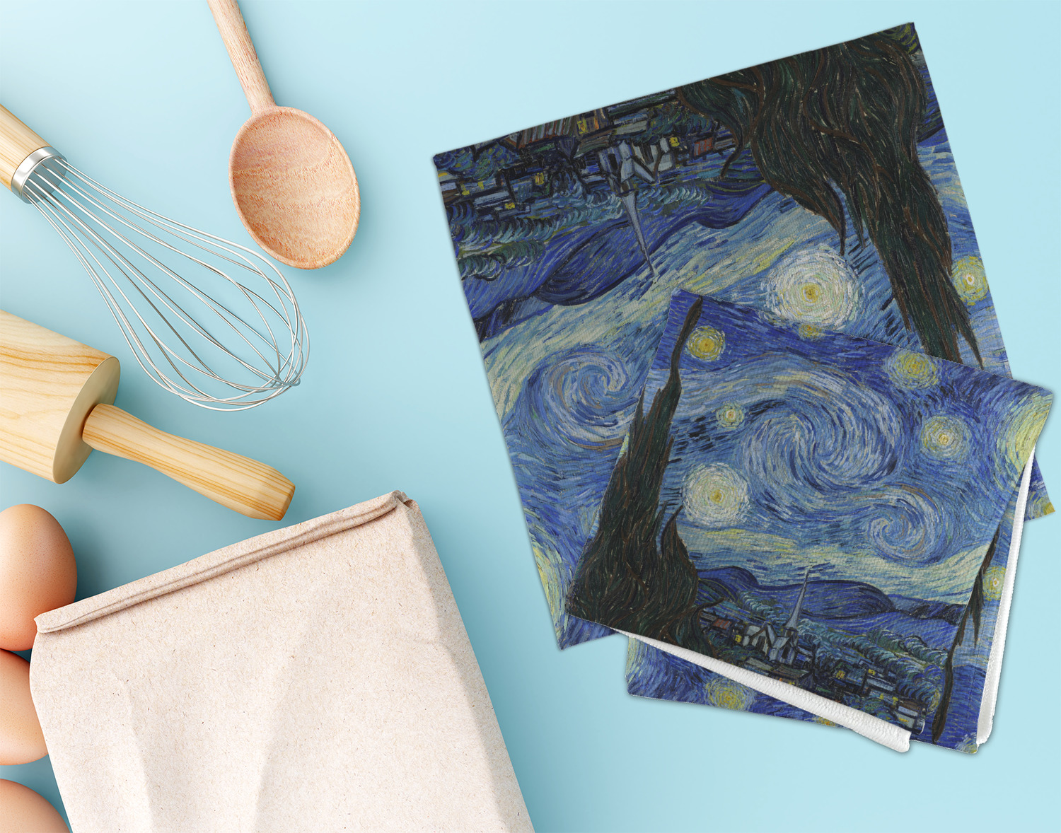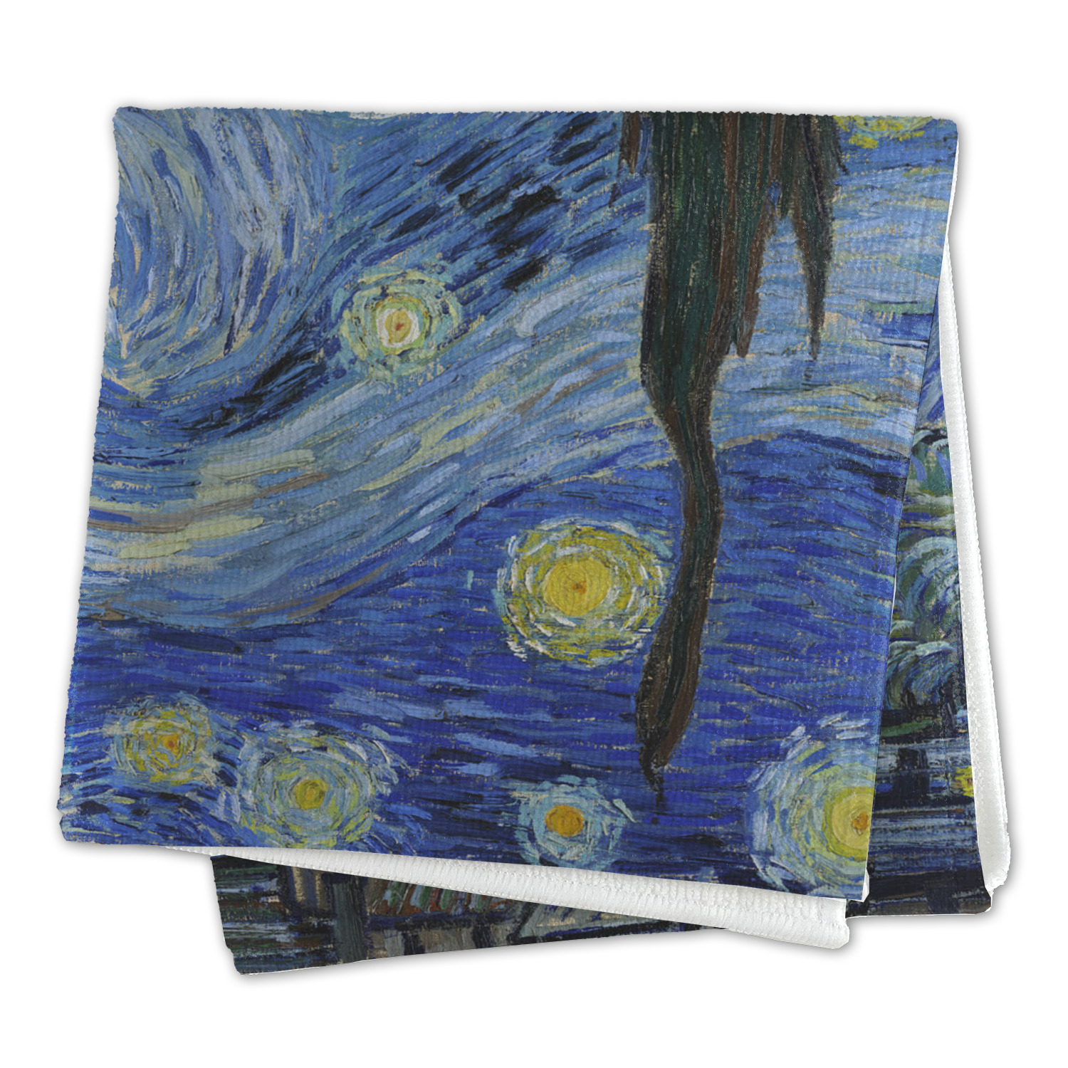 Now you can enjoy Starry Night on a daily basis! Well not all of it! To put this rectangular painting (roughly 4x3) on products, we use as much of the painting as we can on each product. So for a square product like the shower curtain - we use a 3x3 rectangle - which cuts off a little of the sides - but is still very much The Starry Night! For other products such as the wristlet (a wide 4x1 rectangle) - you get a small slice of the painting.