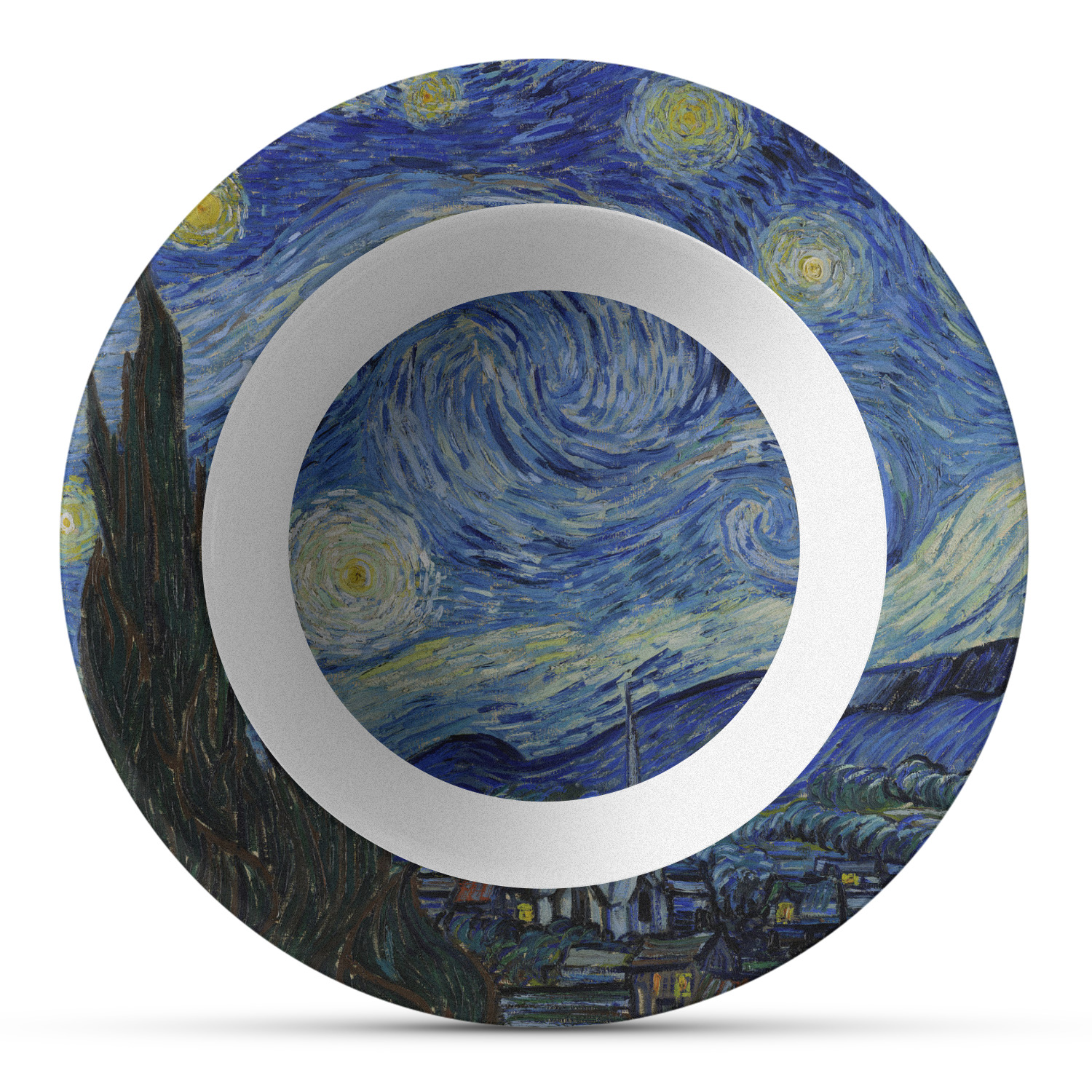 Made from a composite, thermo-set, polymer plastic, these dinner bowls have the versatility, durability, and weight of a melamine bowl without any of the downsides of melamine. Unlike melamine dinnerware, these bowls can withstand high heat. These custom plastic bowls can even handle temperatures of up to 250 degrees Fahrenheit, for up to 60 minutes. The pieces of our plastic dinner set are never made with harmful chemicals, such as BPAs, formaldehyde, DEHPs. We display your personalization on the base of this bowl's interior, while the bowl itself has an 8.75" diameter and is 1.75" tall.