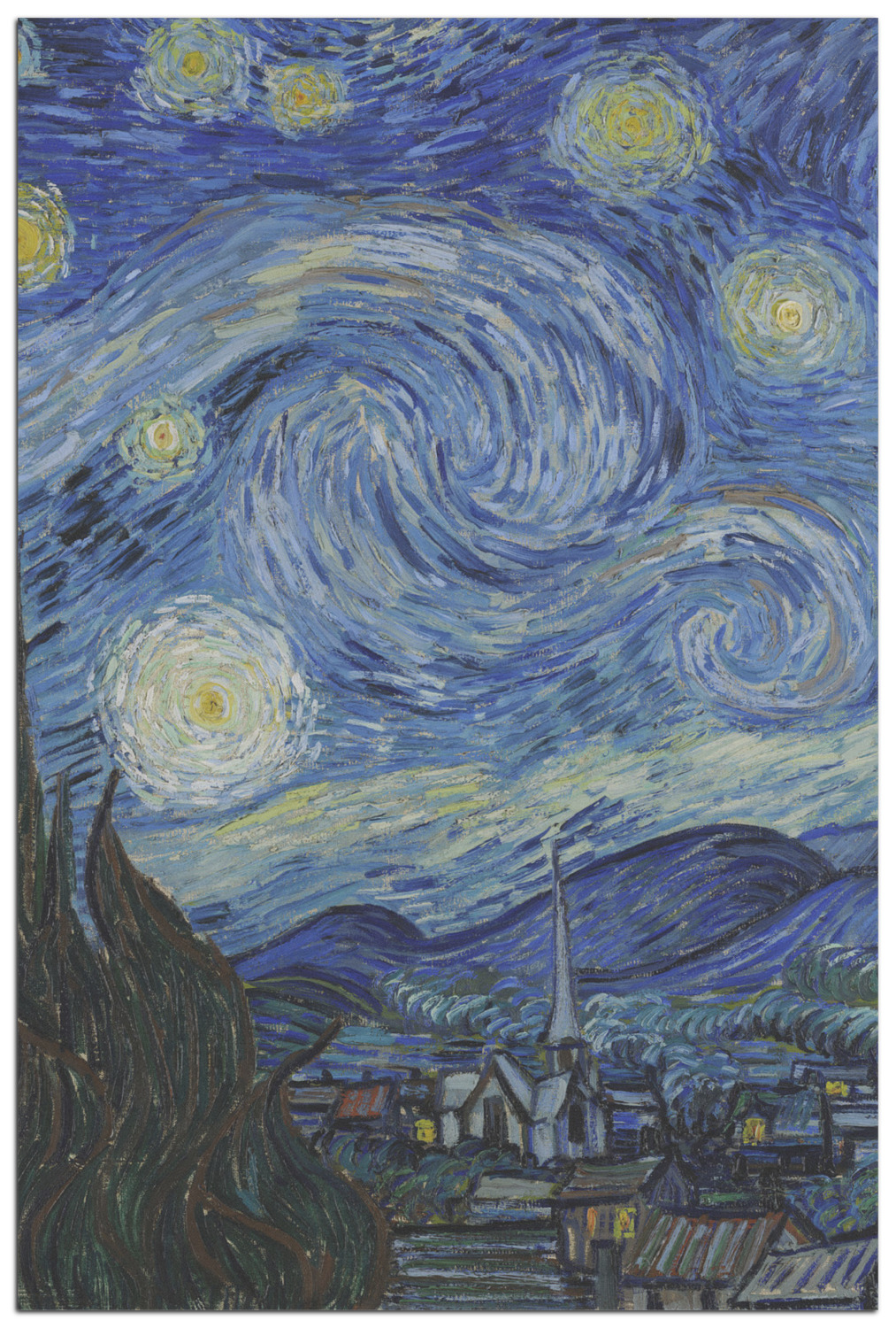 The Starry Night is an oil on canvas by the Dutch post-impressionist painter Vincent van Gogh. Painted in June 1889, it depicts the view from the east-facing window of his asylum room at Saint-Remy-de-Provence, just before sunrise, with the addition of an idealized village. It has been in the permanent collection of the Museum of Modern Art in New York City since 1941, acquired through the Lillie P. Bliss Bequest. It is regarded as among Van Gogh's finest works, and is one of the most recognized paintings in the history of Western culture. (source wikipedia)