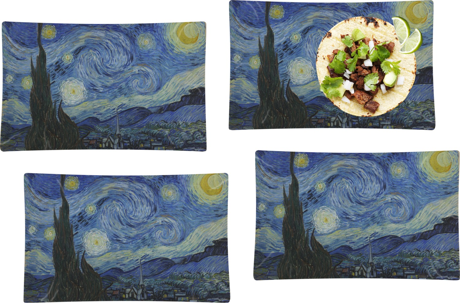 Now you can enjoy Starry Night on a daily basis! Well not all of it! To put this rectangular painting (roughly 4x3) on products, we use as much of the painting as we can on each product. So for a square product like the shower curtain - we use a 3x3 rectangle - which cuts off a little of the sides - but is still very much The Starry Night! For other products such as the wristlet (a wide 4x1 rectangle) - you get a small slice of the painting.