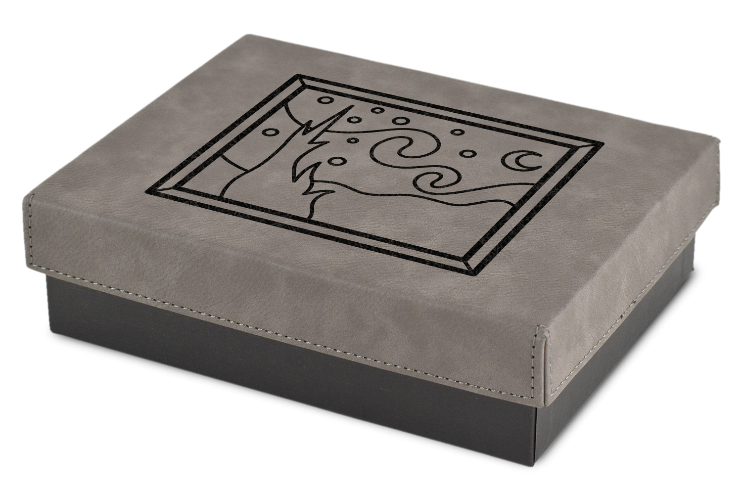 These gift boxes are available in 3 different sizes to accommodate various sized gifts. Available in gray as a neutral color for any occasion as well as to showcase your design boldly. Engraved with a laser this high quality paper board and faux leather gift box is unique and makes any gift stand out.