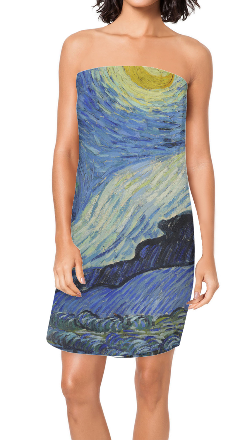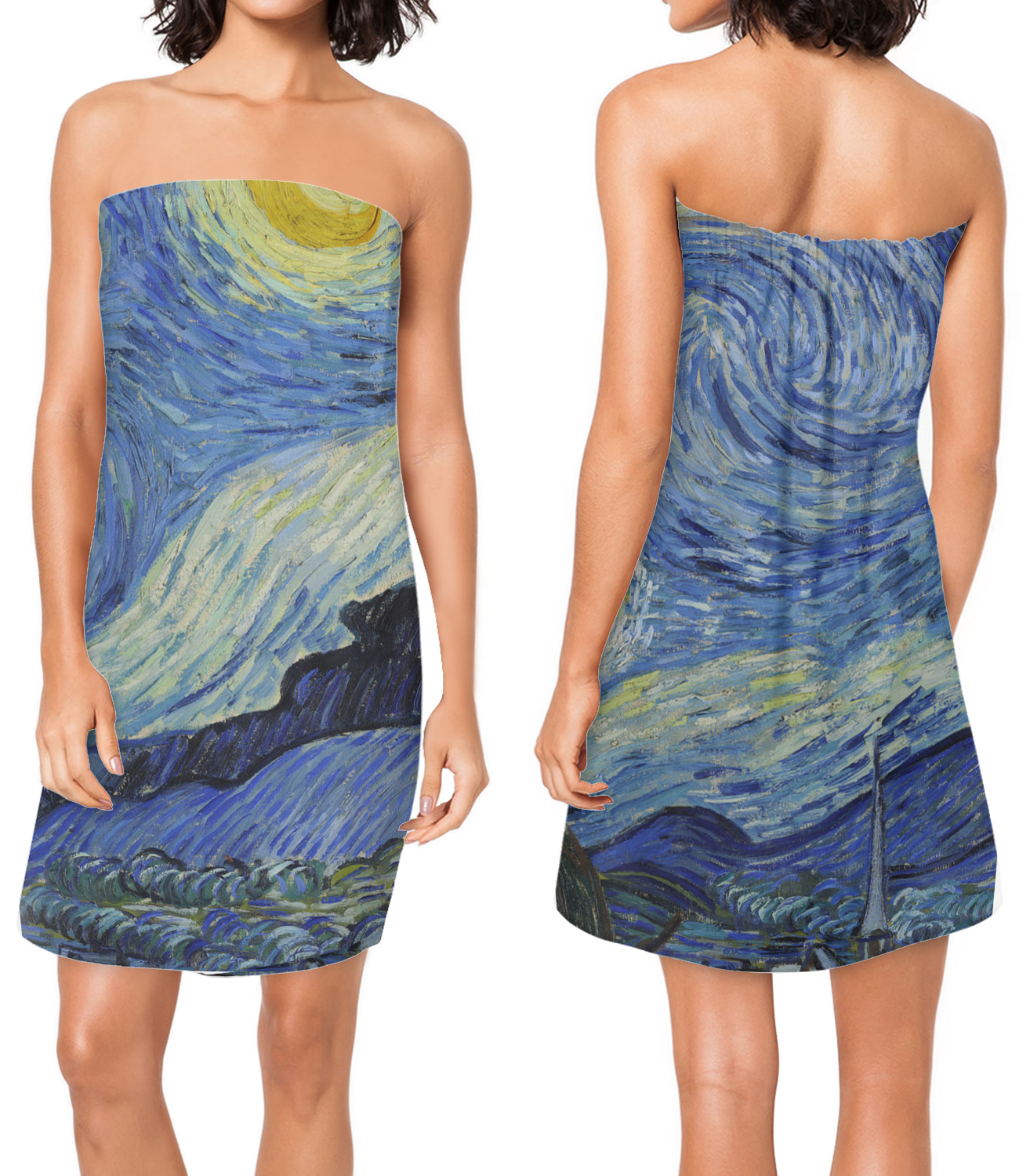 Now you can enjoy Starry Night on a daily basis! Well not all of it! To put this rectangular painting (roughly 4x3) on products, we use as much of the painting as we can on each product. So for a square product like the shower curtain - we use a 3x3 rectangle - which cuts off a little of the sides - but is still very much The Starry Night! For other products such as the wristlet (a wide 4x1 rectangle) - you get a small slice of the painting.