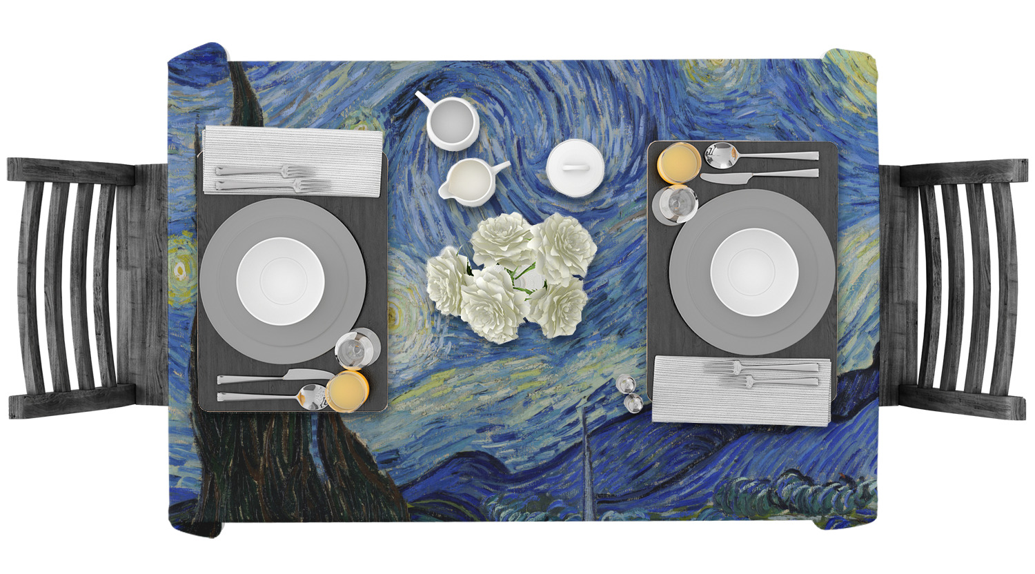 Now you can enjoy Starry Night on a daily basis! Well not all of it! To put this rectangular painting (roughly 4x3) on products, we use as much of the painting as we can on each product. So for a square product like the shower curtain - we use a 3x3 rectangle - which cuts off a little of the sides - but is still very much The Starry Night! For other products such as the wristlet (a wide 4x1 rectangle) - you get a small slice of the painting.
