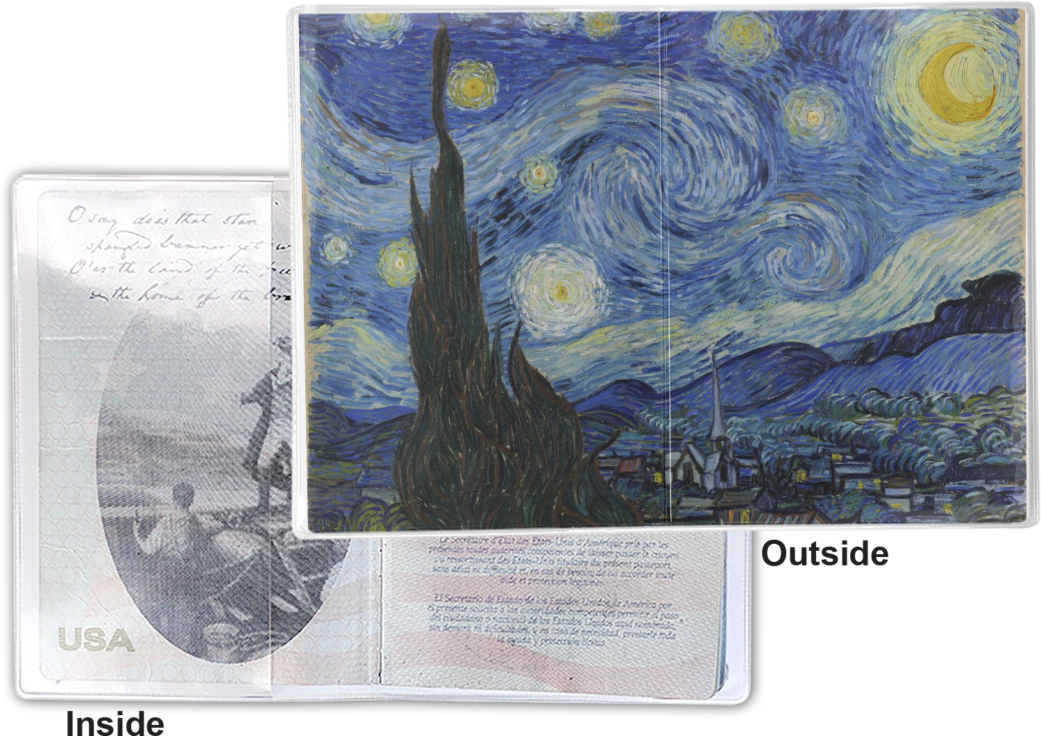This cover is made of a sturdy clear vinyl with a personalized vinyl insert inside. There is a large and a small pocket on either side to hold the covers of your passport easily and firmly. The passport holder is approximately 7.5" x 5.25", the perfect size to snugly fit your passport. This slim cover is the perfect way to protect your passport without being one more bulky item you have to carry.
