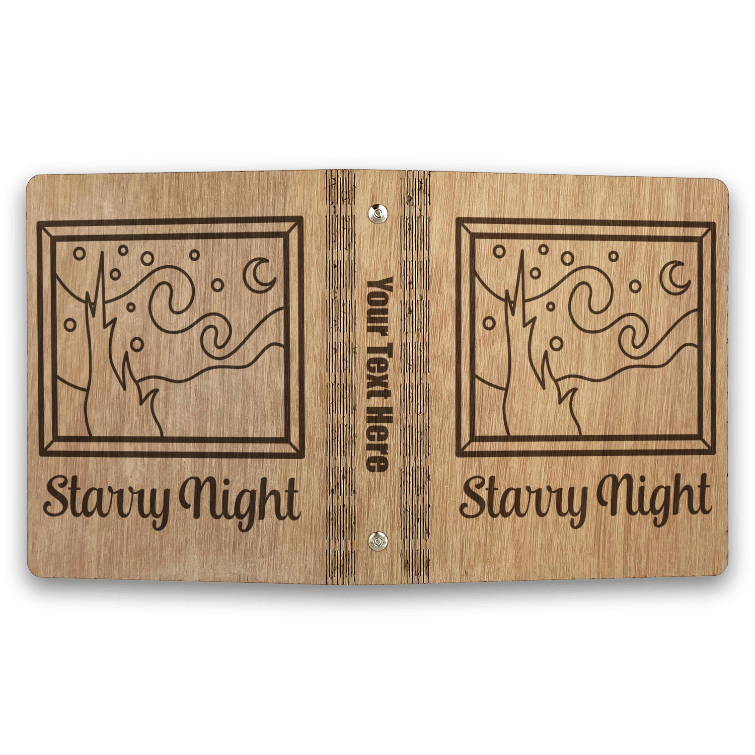 Made from premium hardwood, these are laser engraved then polished with wax to give a nice sheen and smooth feel to the product. The inside of the binders are finished with a faux leather material which is bonded to the inside of the wood to strengthen the wood and give the inside the same refined finish. The rustic brown and gold leather material adds a nice classic touch to the binders.