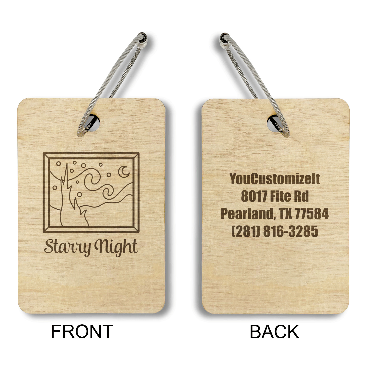 Made from a premium hardwood, these luggage tags are laser engraved and cut just for you. The front contains your design of choice and the back has your contact information to ensure your luggage gets back to you if ever lost.