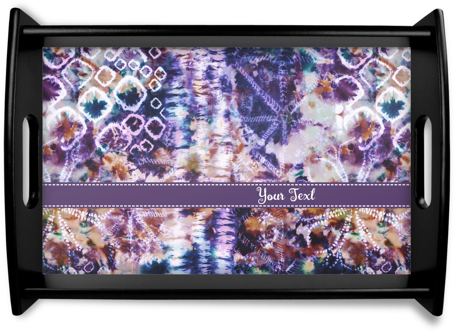 This serving tray with handles features square edges and two rounded sides, creating a very modern look. Each side is fabricated from a beautifully cut, natural wood. The bottom of the interior of the tray displays your customized design in bright, vibrant color. The tray is sold in both a black color and a natural wood look. Each variation of the wood serving tray has two sizes: Small, which is 14" x 10" x 2.25", and Large, which is 19.5" x 13.5" x 2.75".