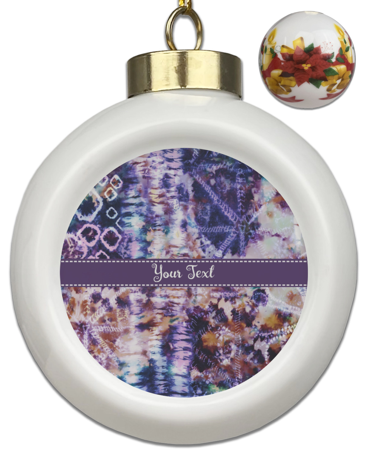 Our Christmas ornaments are a unique ceramic ball shape with a twist as it has a flat face to display your custom design! Select from one of our two design types - Christmas Tree or Poinsettia Garland - to adorn the curved back of your personal design. Each ornament measures 3H x 2.5W x 2D accompanied with a gold string accent for finishing touches to hang on your beautiful Christmas tree!