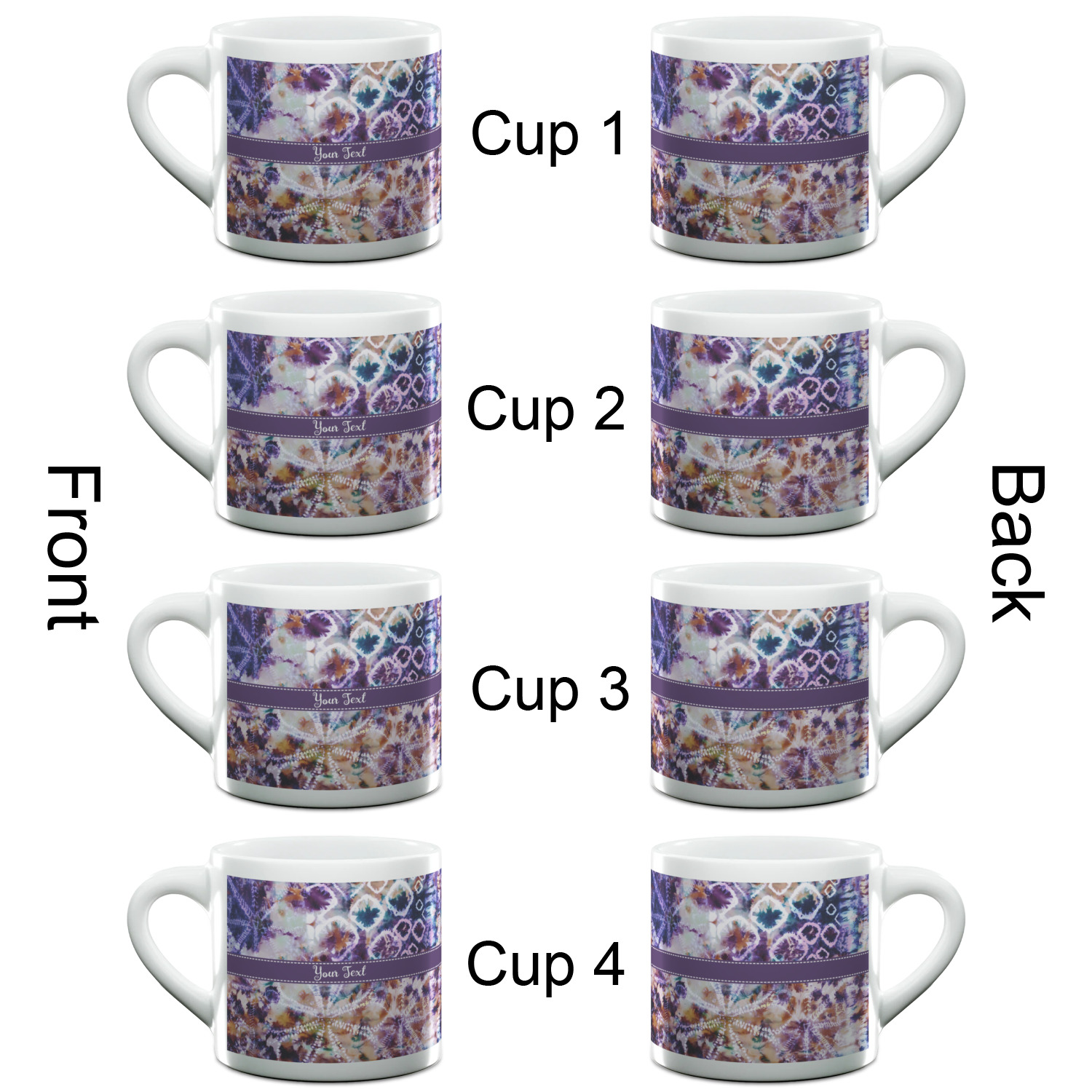 Each of our espresso mugs is a ceramic material sure to keep your drink warm. Personalize one cup for yourself, or order a set of 4! Its the perfect little gift for any coffee lover! We carry two sizes for you to personalize - 3 oz. (approx. 3.25" x 2.325" x 2.625") or 6 oz. (approx. 4" x 2.9" x 2.9"). Our 3 oz. mug is perfect for that single shot espresso while our 6 oz. mug can be your next favorite cappuccino cup holding two shots of espresso!