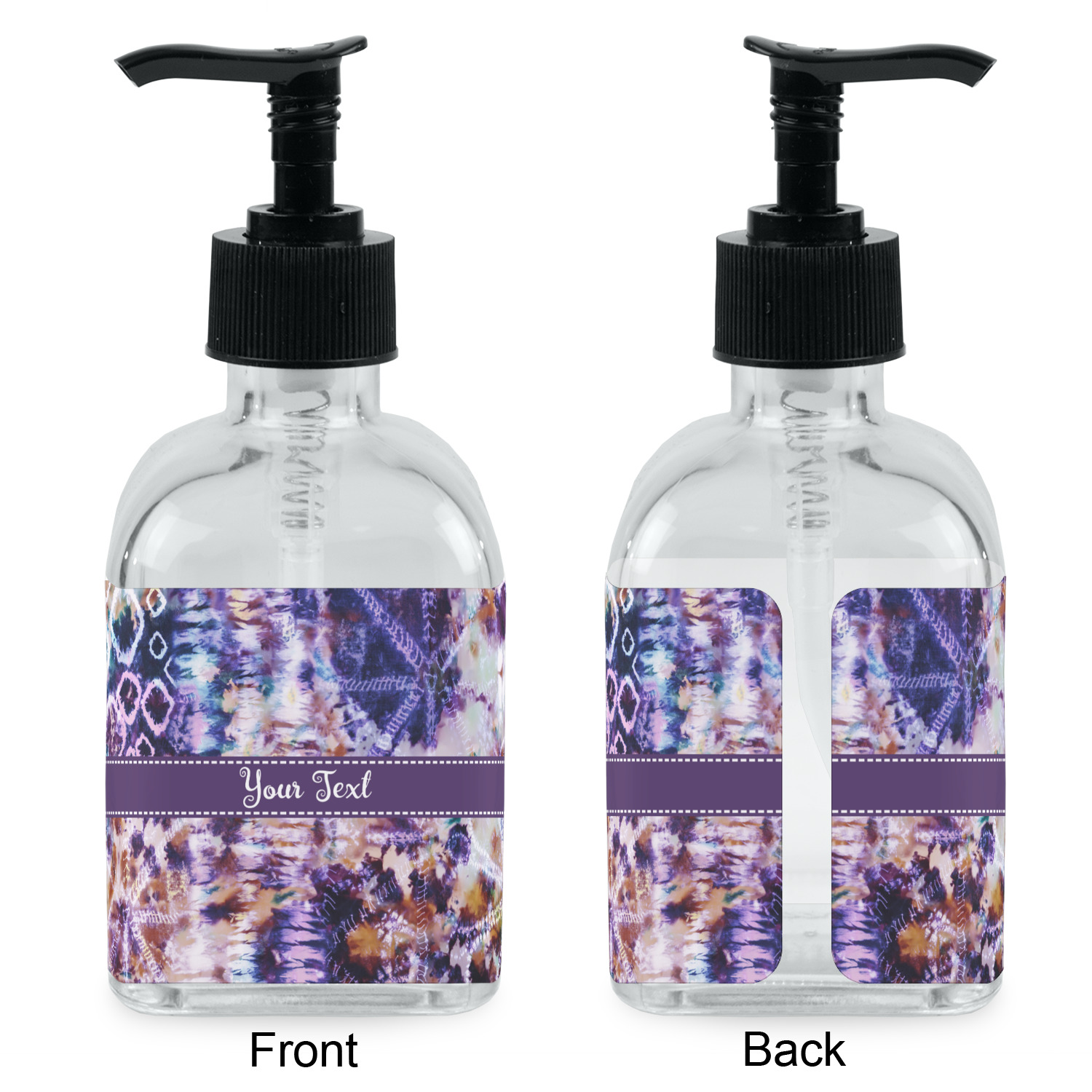 Crafted from a high-quality glass, these soap dispensers and lotion dispensers are durable and robust, while still looking elegant. They are sold with black pumps. Each soap dispenser pump measures at 6.5 by 2.25 inches. On these soap pumps, we display your customized design on a personalized vinyl adhesive on three sides. That way, you can judge how much liquid is in the bottles from the back.
