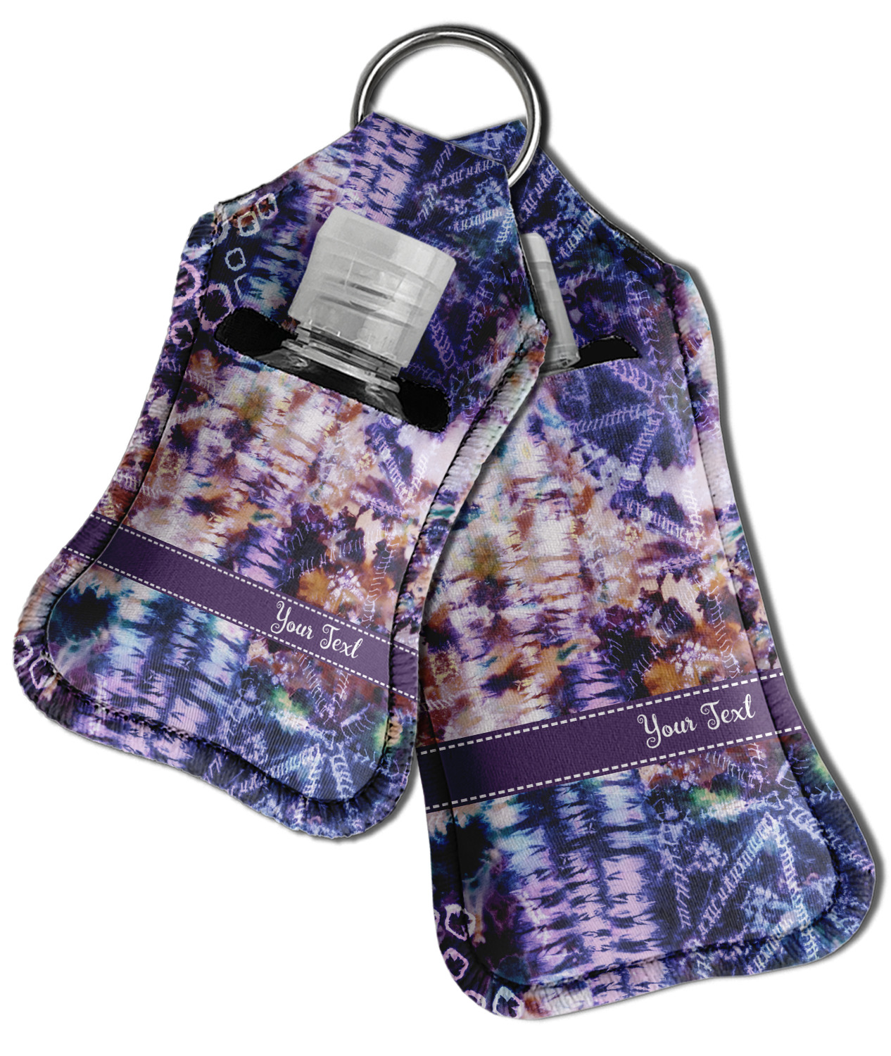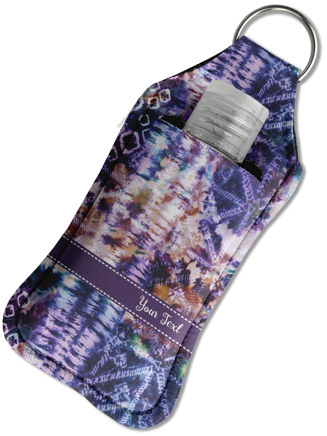 Each hand sanitizer holder comes with its own empty travel-sized, refillable hand sanitizer sure to fit snug in your customized sanitizer case! Our hand sanitizer cases are a durable, yet soft neoprene material sure to last any daily activities or travel agenda. Customize and personalize a hand sanitizer bottle holder with one of our two sizes - small (4.25" x 2.25") or large (5.5" x 2.5"). Each travel sanitizer holder comes with a keyring for attachment on bags, keys, or more!