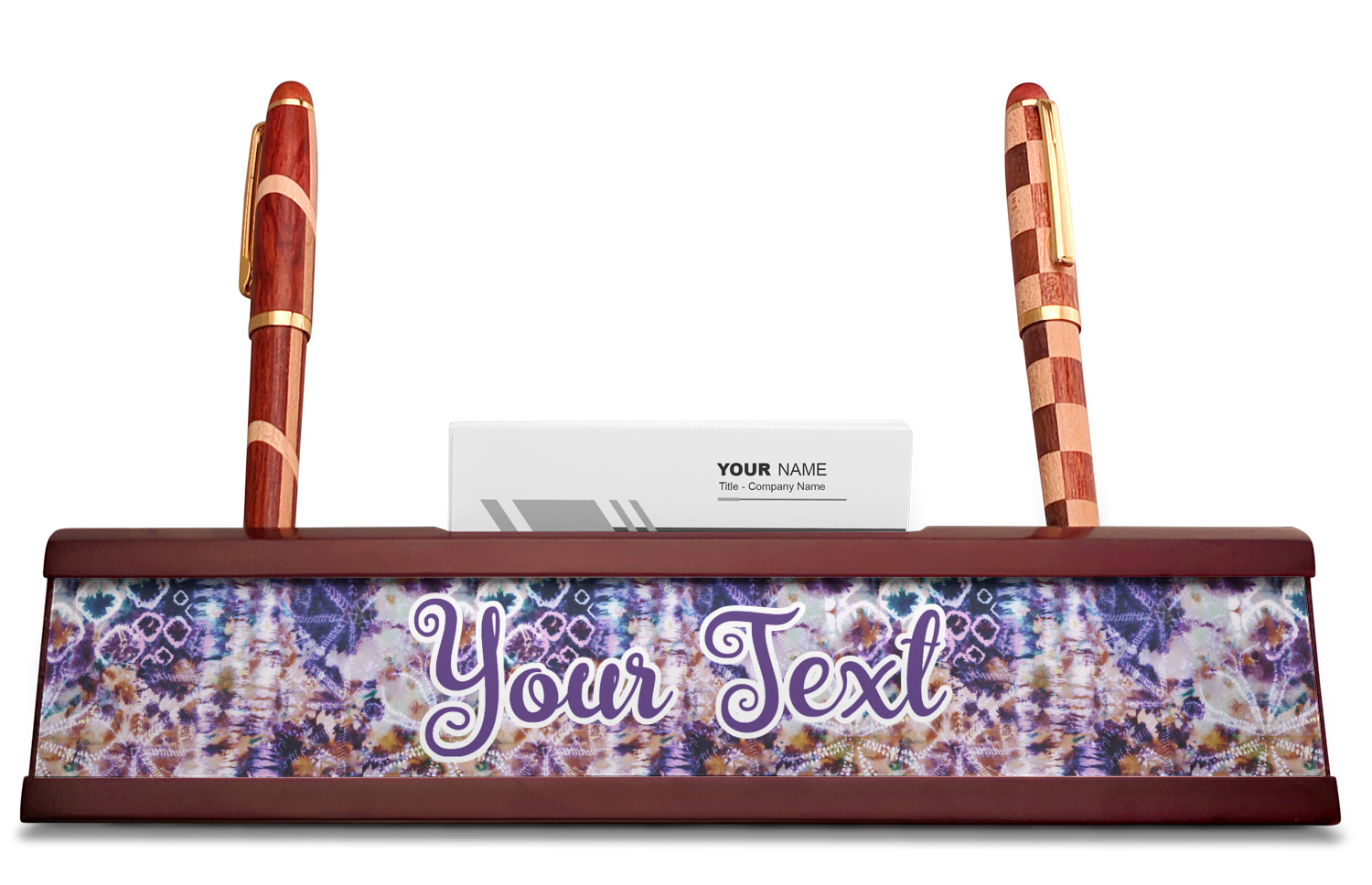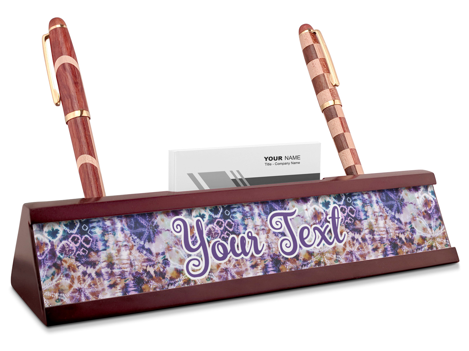 Your desk name plates are crafted from a high-quality, dark-cherry mahogany. At approximately 9.5 by 1.875 by 2.5 inches, this name plaque will fit perfectly, front and center, on your desk. Your customization spans across the entire face of the nameplate. Behind the nameplate lies a skinny slot that can fit approximately 15, traditionally-sized, business cards. You can also store your writing utensils on either side of this custom desk name plate.