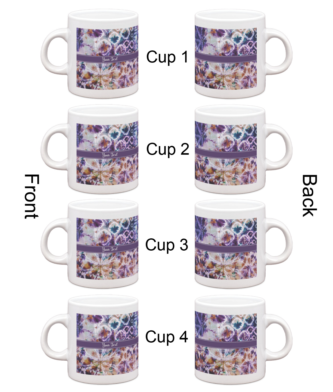 Each of our espresso mugs is a ceramic material sure to keep your drink warm. Personalize one cup for yourself, or order a set of 4! Its the perfect little gift for any coffee lover! We carry two sizes for you to personalize - 3 oz. (approx. 3.25" x 2.325" x 2.625") or 6 oz. (approx. 4" x 2.9" x 2.9"). Our 3 oz. mug is perfect for that single shot espresso while our 6 oz. mug can be your next favorite cappuccino cup holding two shots of espresso!