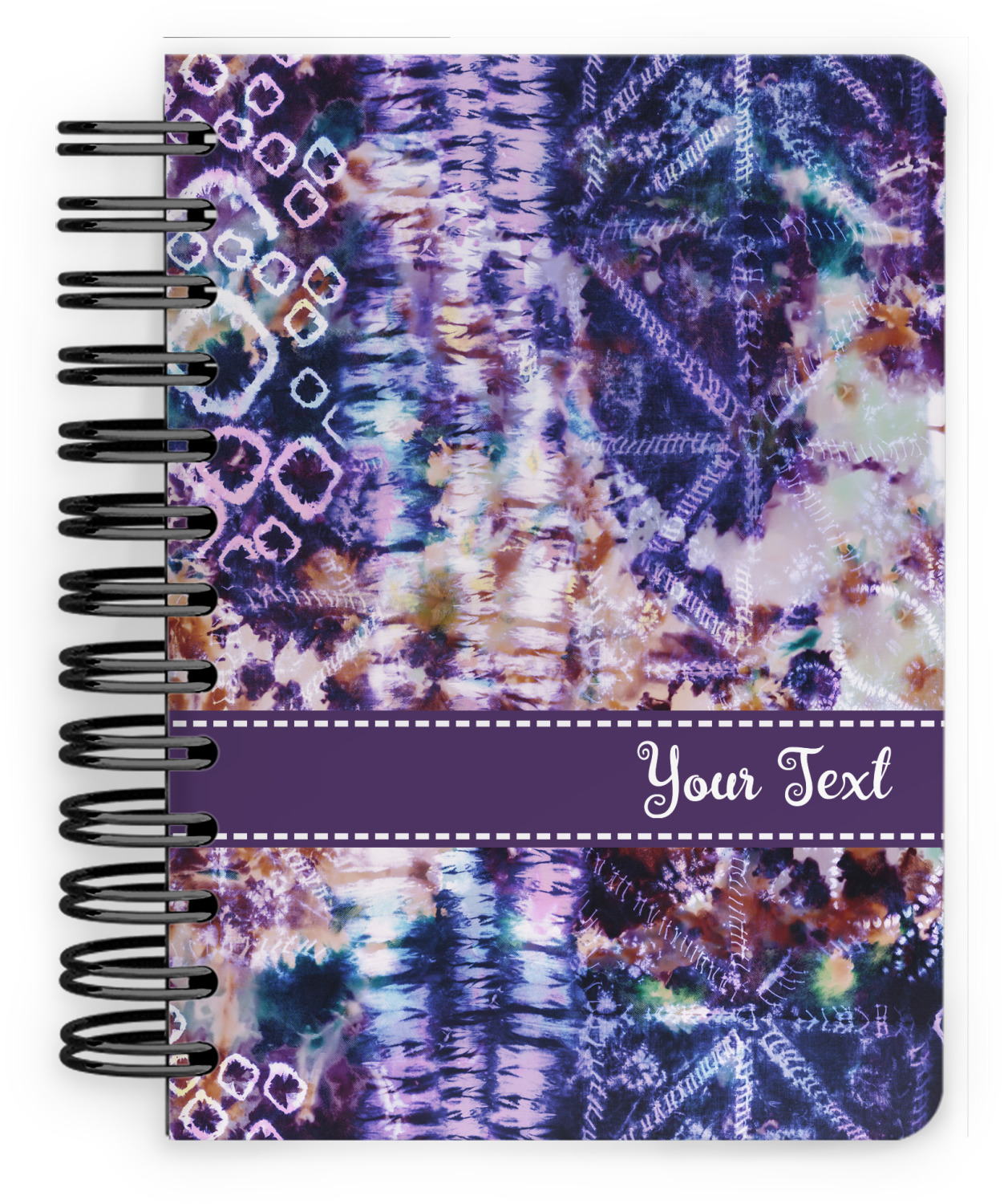 This spiral notebook includes 75 sheets of thick, ruled paper. The front and back of this custom notebook is made of a robust, laminate, plastic covering. We print your personalization on these two panels, underneath a glossy finish, which emphasizes the colors of your design. The two panels and the sheets of paper are held together by a sturdy, black coil. The paper within your bound notebook is perforated for easy, clean tearing.