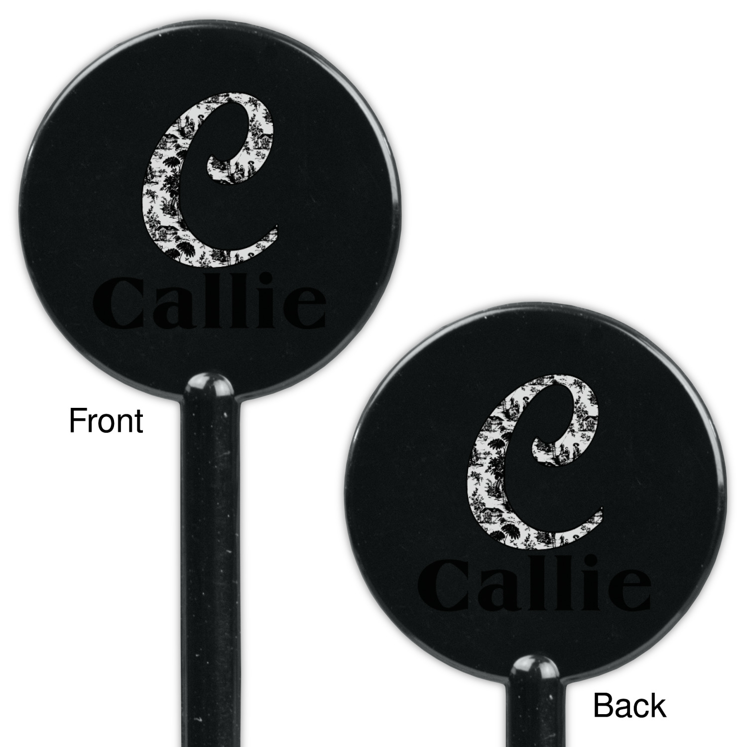Palm Trees Designs for 5.5" Round Plastic Stir Sticks - Black - Double-Sided