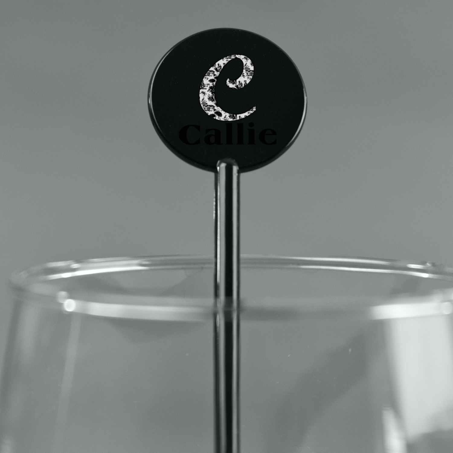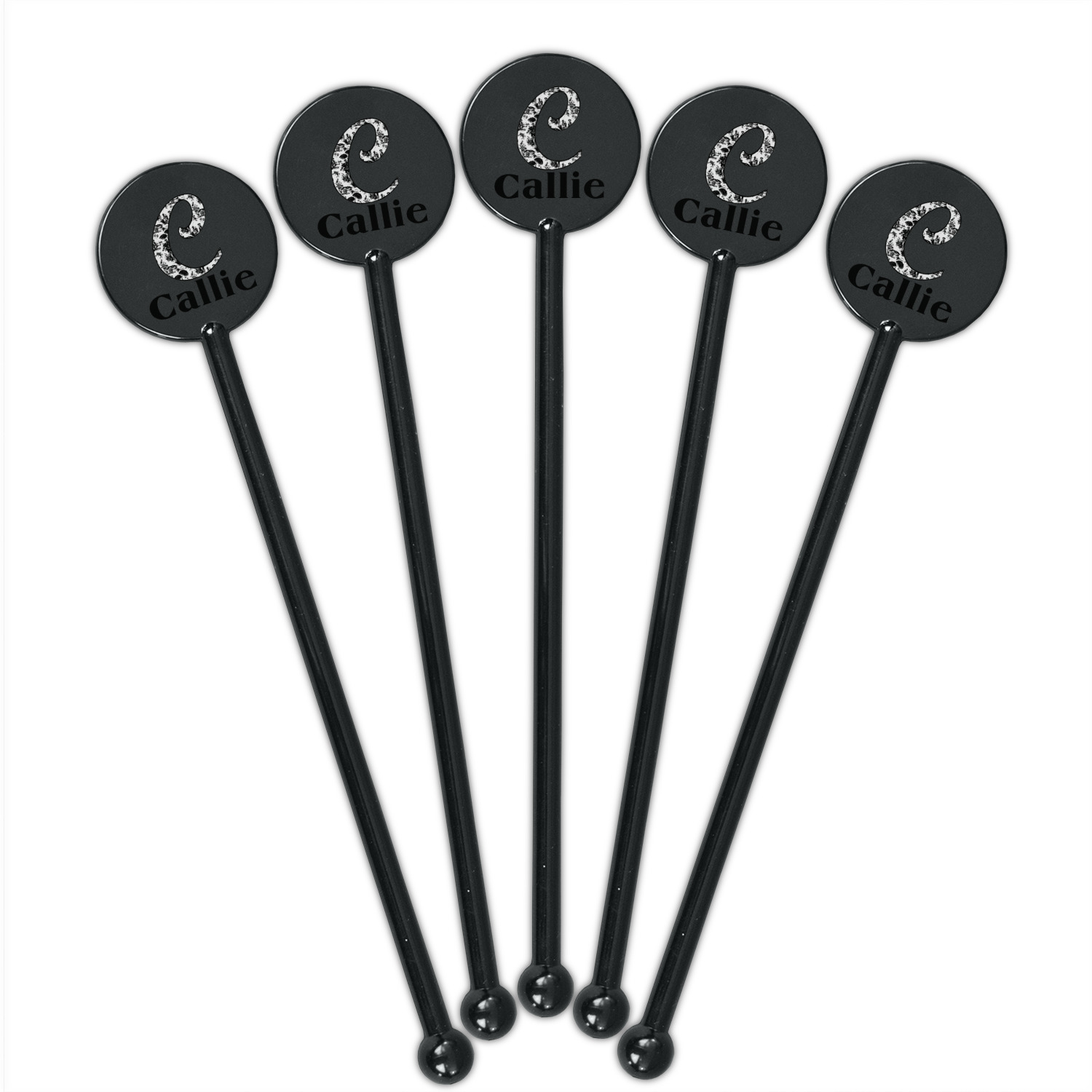 Palm Trees Designs for 5.5" Round Plastic Stir Sticks - Black - Single-Sided