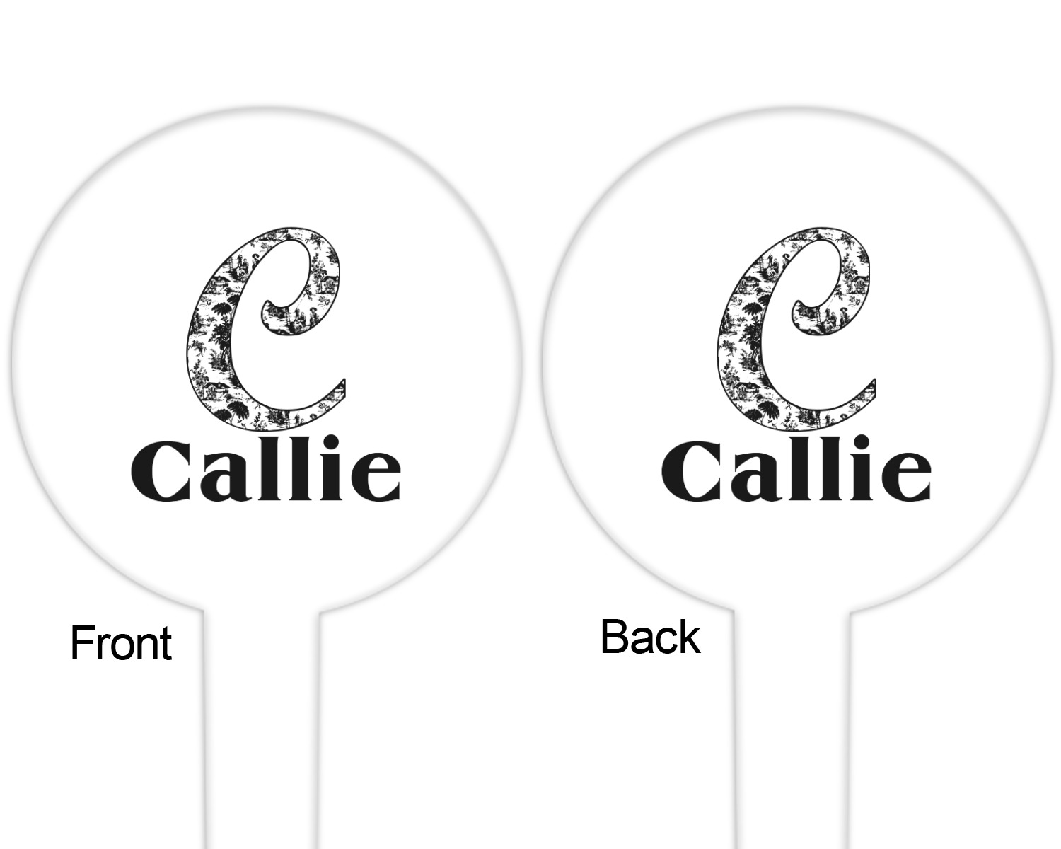 The round disc on these food & drink picks can be customized and personalized to your specifications. Your image will be printed in full color on one side or both sides. You can use the same image on both sides or use two different images.
