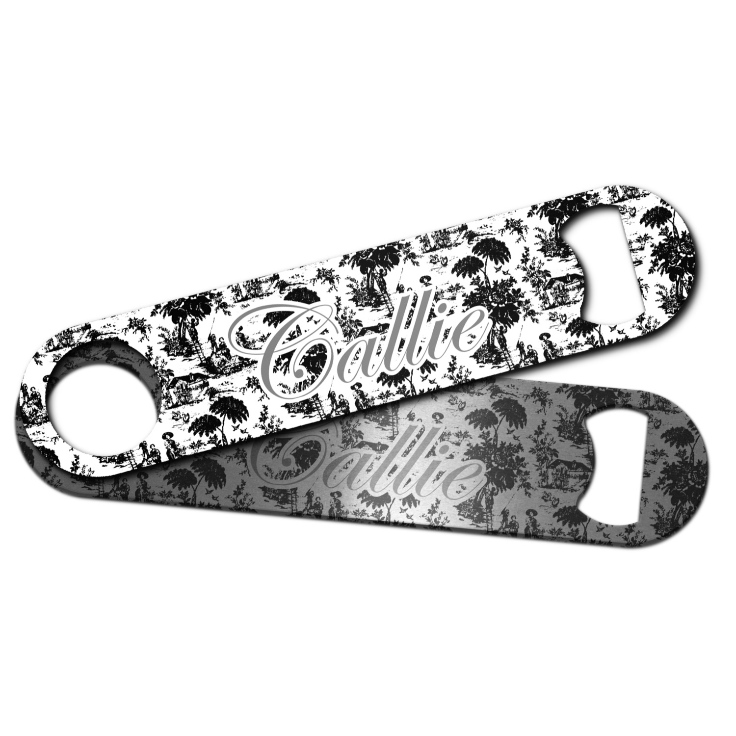 Stop struggling with the caps or your bottled beverages by purchasing one of our personalized bottle openers! These wrench-like custom bar blades are built to last. Customize one for your home's bar, or as a practical gift for a loved one!