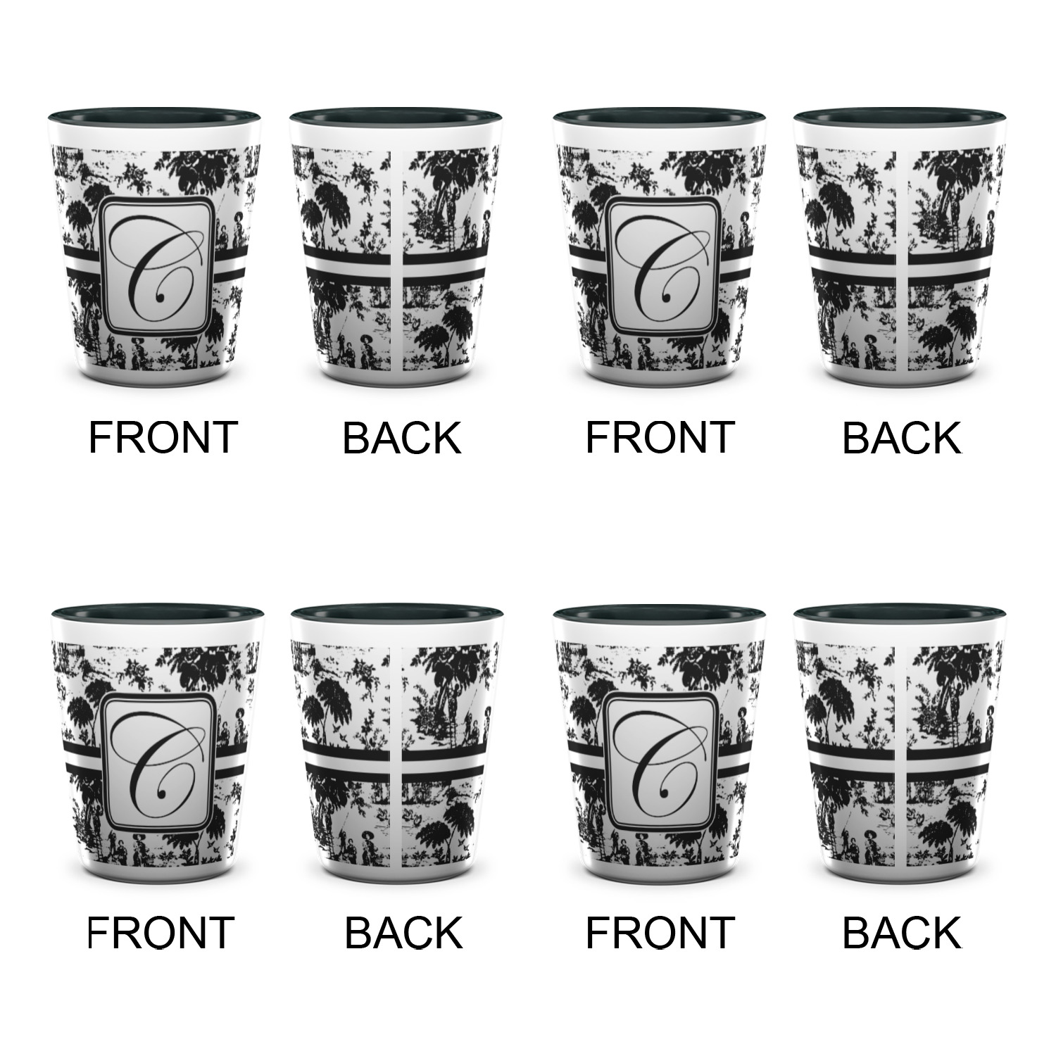 Made from ceramic these shot glasses are printed in full color with the design of your choice. These are a standard 1.5oz size and stand 2.25" tall. Available in a full white ceramic or a two-tone with a black color inside the shot glass. Buy a single or a set of 4, all of which can be designed separately to get you just what you want and need.