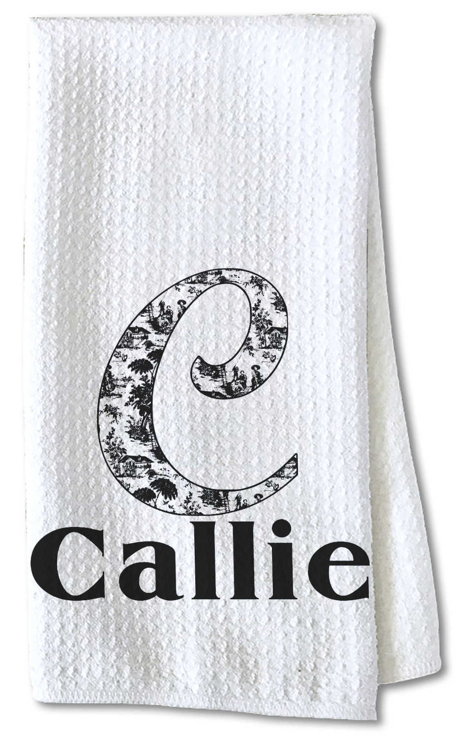 Each waffle weave kitchen towel is approximately 16 x 24 inches with your design printed on one side and the back is white.