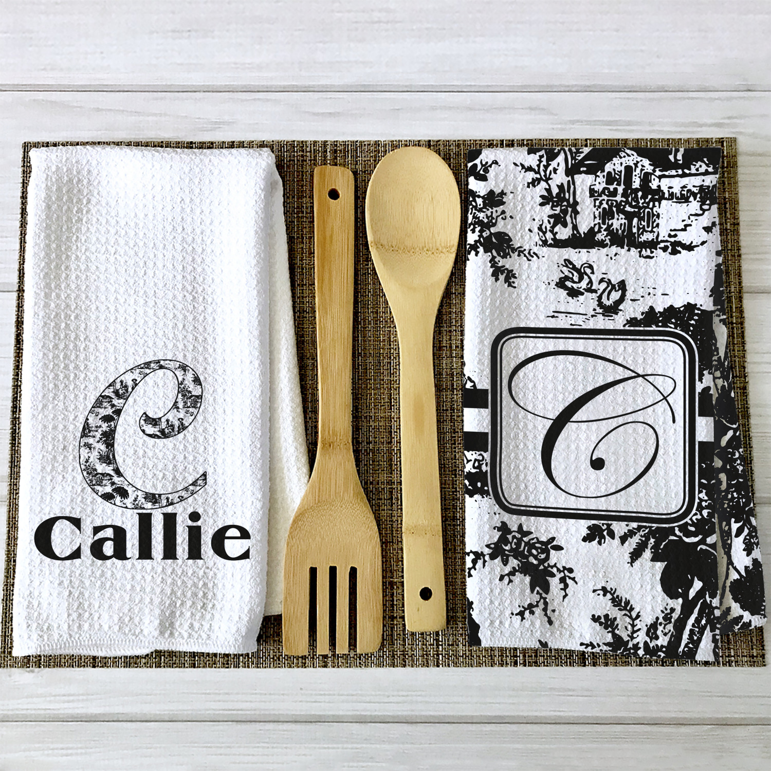 These towels have a fresh and modern look. They feel crisp, clean, light and airy - especially the partial print when customized with kitchen quotes & personalization in solid black color; thus giving the towels a classic black & white look!